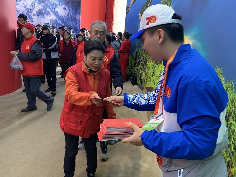 10月14日至20日,学校团委择优选拔出200名政治坚定、品格优异的志愿者参与到2019年庆祝中华人民共和国成立70周年大型成就展志愿服务中,开展为期7天的志愿服务工作。服务期间,我校志愿者工作细致认真,服务热情周到,得到了工作人员及参观游客的一致好评。