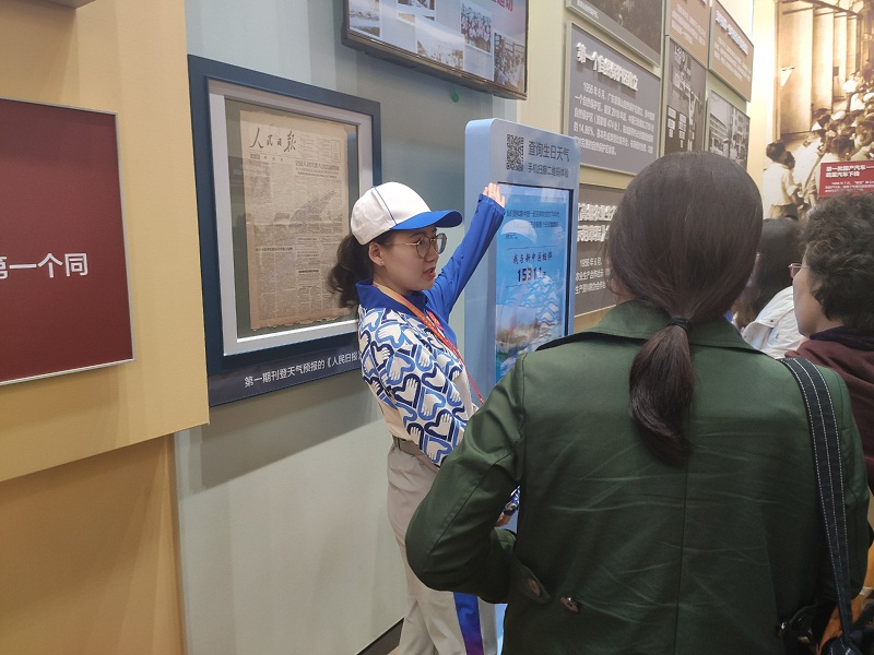 在“生日天气查询”、“1977年准考证打印”等岗位分配有84名志愿者。志愿者们主要负责协助游客使用互动仪器,保证参观者的体验。“1977年准考证打印”吸引的大多是中老年群体,他们中的很多人都是1977年高考的经历者,志愿者们协助拍照并耐心地教授他们如何保存“准考证”,游客们也和志愿者们感慨地聊起了当年的高考经历;在“未来生活馆体脂秤”互动岗位上,志愿者服务了一位聋哑游客,以出色的反应以及耐心地服务,利用手机打字为游客解答问题,事后志愿者张凌浩感慨:“看到他们理解的笑容和远去的背影,心里百感交集,面对他们无法正常表达的那种无助,让我一瞬间懂得了志愿者的意义。”