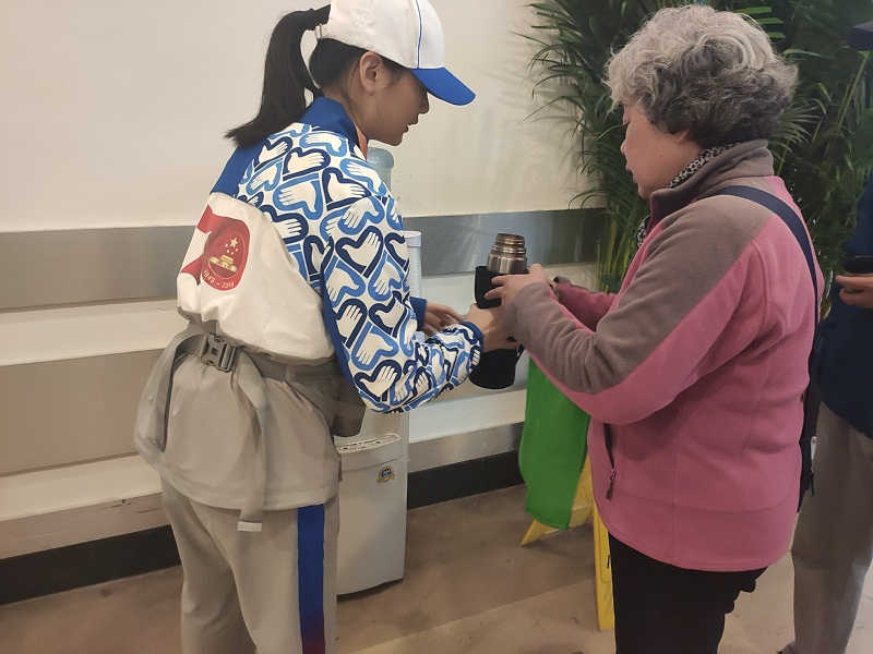 服务期间,我校共计27名志愿者被分配在三个饮水点工作,主要负责为游客提供饮水服务,解决游客饮水需求,为北京展览馆人性化服务提供支持。参与饮水点服务的志愿者每天与不同的游客打交道,每一位志愿者需要时刻保持认真亲和的态度,看似简单,做起来却有一定的难度。在饮水点,志愿者们服务了大批游客,其中也包括海外华侨与外国友人。当志愿者为游客们端上热水时,他们用亲切的语言表达了对志愿者的感谢。同时,他们还和志愿者进行了友好的交谈,并表达了他们对于大型活动的赞许和对志愿者的肯定。饮水点的志愿者们坚持微笑服务,用微笑面对每一个前来饮水的游客。在此次志愿活动中,志愿者们再次深刻感受到了志愿的力量,认识到了服务的重要。