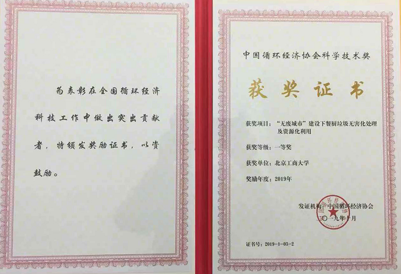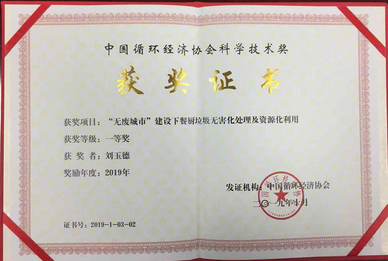 10月20日,中国循环经济协会科技奖颁奖仪式在南京国际展览中心召开,我校刘玉德教授团队申报的《“无废城市”建设下餐厨垃圾无害化处理及资源化利用》项目以第二完成单位荣获一等奖。