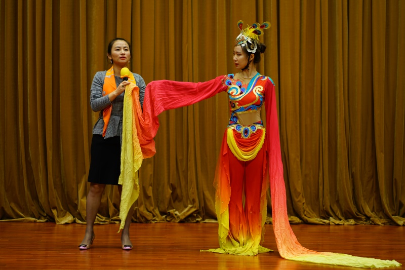 10月24日,中国舞蹈家协会会员饶莉娜从舞蹈的概念、起源、要素以及分类四个方面向同学们全面介绍了舞蹈这个熟悉而又抽象的概念。她谈到,舞蹈是最能表达人内心情感的艺术形式之一,是人类共同的语言,欣赏舞蹈是与世界的一种对话方式。饶莉娜重点介绍了艺术舞蹈的类型,并请来校舞蹈团队进行表演,更直观地让同学们了解舞蹈的不同表现形式。结合舞蹈团队的现场表演,饶莉娜老师生动地介绍了古典舞、芭蕾舞、民间舞等舞蹈的诞生背景以及特点。校舞蹈团以各种艺术形式的精彩舞蹈串烧惊艳亮相,不仅使舞蹈分类更立体直观地展现出来,更将讲座气氛推到高潮,使同学们久久沉浸在舞蹈余韵中。饶丽娜鼓励同学们了解舞蹈,在舞蹈中充实自己的情感。饶莉娜老师带来的生动有趣的讲座和舞蹈表演,让大家可以近距离的接触舞蹈,感受舞蹈的美,用真诚的心灵走进充满魅力的艺术世界。