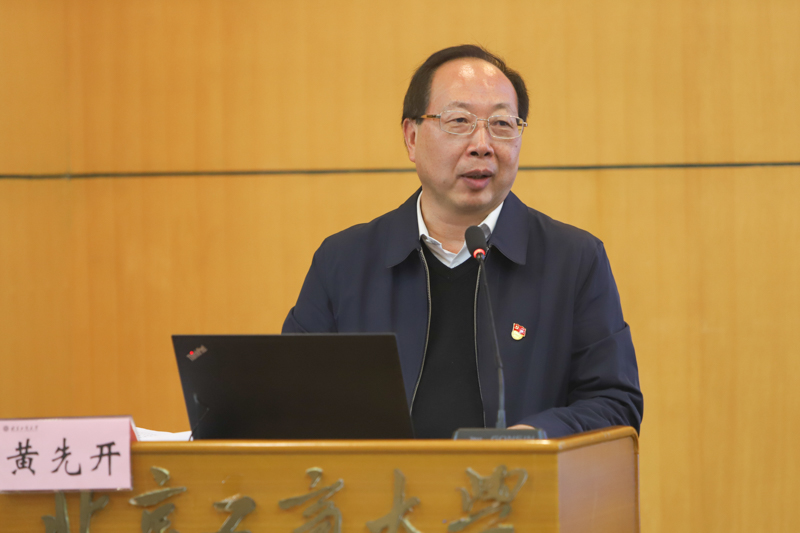 党委书记黄先开详细解读了《中共北京工商大学委员会关于进一步加强和改进干部工作作风的若干规定(试行)》。黄书记指出,落实全面从严治党关键在于抓好作风建设,以钉钉子精神抓好作风建设,要坚持不懈纠“四风”,不断巩固拓展落实中央八项规定精神。为贯彻落实中央相关文件精神,结合学校具体情况,特制定本规定。他逐条解读了加强工作谋划,及时沟通反馈;加强议题把关,提高决策效率;增强宗旨意识,关心群众利益;完善研判机制,主动担当作为;明确岗位职责,避免缺位错位;加强沟通协调,确保工作落实;遵守请示报告制度,严格请假程序;客观公正待人,反对歪风邪气等内容,要求学校领导班子和中层干部做到严格遵守规定、相互监督,抓好作风建设,凝聚共识、齐心协力,推动学校事业发展再上新台阶。