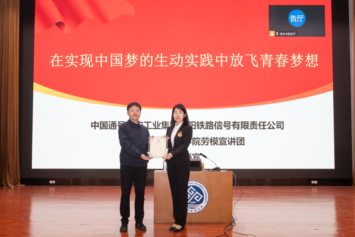 在讲座开始前,学生工作部部长郑光、学校工会常务副主席杜亚辉、学生工作部副部长党浩分别为授课劳模颁发了我校劳动教育教研室“校外讲师”聘书。