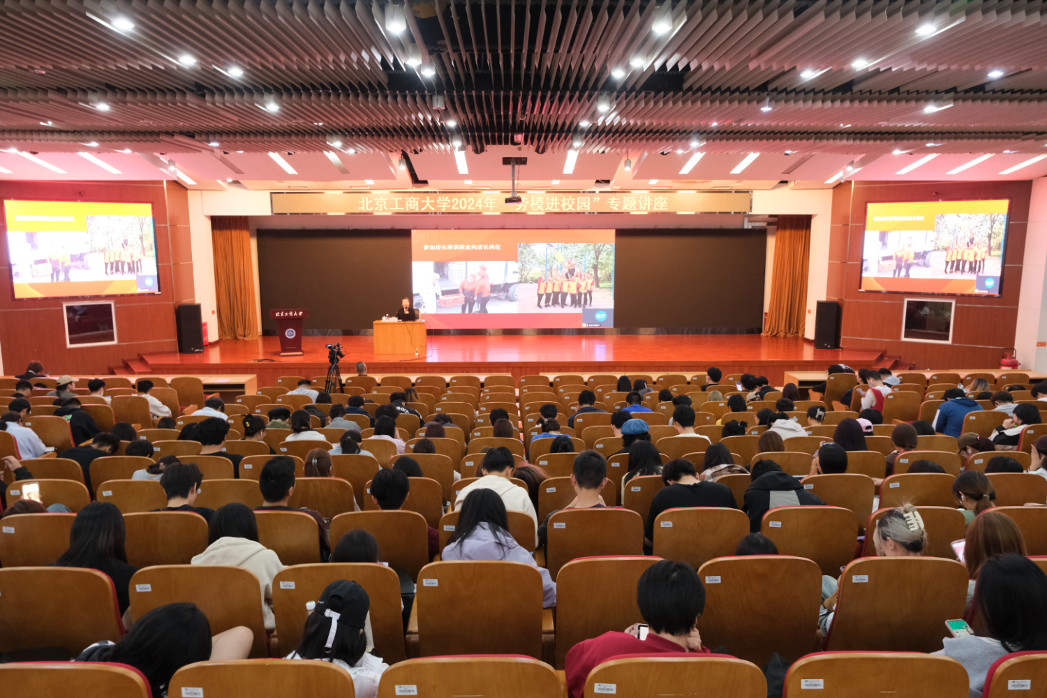 在今年五一劳动节来临之际,为使大学生树立崇尚劳动、热爱劳动观念,4月17日,按照《北京工商大学2024年劳动教育实践月》有关工作安排,在中国劳动关系学院劳模学院的大力支持下,劳动教育教研室在良乡校区举办2024年“劳模进校园”专题讲座。此次活动邀请了三位全国劳模代表柯晓宾、张海燕和李小锋来校为学生授课,2023级全体学生参加此次活动。