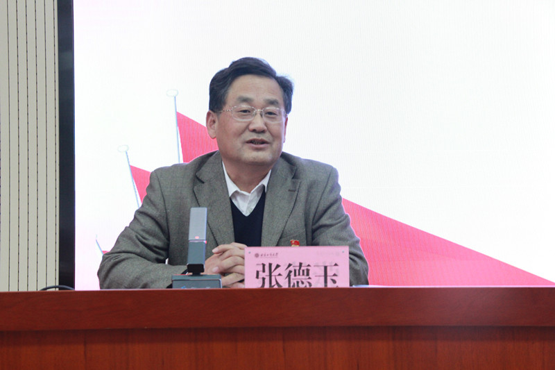 张德玉副书记代表学校感谢张首映副总编辑对我校思想政治理论课建设的精心指导和大力支持,他指出,张首映副总编辑的专题讲座从历史和现实两个维度深刻阐释了“百年未有之大变局”,对青年学生在实现中华民族伟大复兴中国梦的征程中肩负起伟大使命和历史责任意义重大,是一堂精彩的思想政治理论课。他强调,马克思主义学院领导、教师要结合工作实际,更加扎实有效地加强马克思主义学院建设,推进思想政治理论课改革创新。