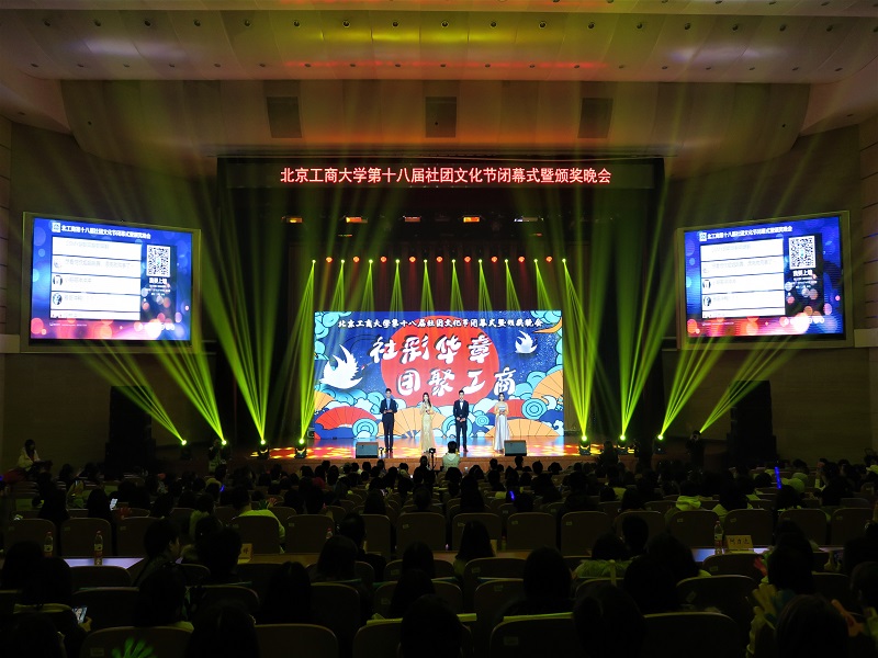 12月4日,学校第十八届“社彩华章,团聚工商”社团文化节闭幕式暨颁奖晚会在良乡校区举行。校团委书记王海伟、学生处副处长许峰以及学院团委书记、学生社团指导教师代表和我校700余名学生共同参加了活动。来自北京理工大学、北京工业大学等高校的学生代表也应邀参加了晚会。