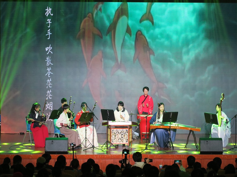 演出形式新颖,内容丰富,融歌曲、舞蹈、武术、器乐等多种表演形式于一体,各学生社团精心准备,为在场观众献上了一场视听盛宴。伴随着悠扬的乐曲,雪域锅庄社的舞蹈《羌塘舞蹈》,尽情地展现着民族风情;民乐团带来的《大鱼》旋律悠远绵长,辽阔空灵,如诗一般深入人心;合唱团用清丽的曲调动情地吟唱《没什么大不了》,彰显青春与活力;GSMY街舞社的舞蹈《Heathens》火热炫酷,点燃了现场的气氛;武术协会《武动乾坤》行云流水、刚劲有力,彰显了武术的魅力;七音阶国标舞协会《七音之律》将技术动作、乐曲旋律完美结合,生动演绎了流畅优美的国标之韵;校园国防社带来的情景表演《兵耀工商》,铿锵有力,步伐豪迈,动作整齐划一,展现出退伍大学生士兵的青春风采,将现场气氛推向新的高潮;知行魔术社表演的魔术小品《买橘子的小男孩》展示了魔术独特的魅力,激发了观众们的无限遐想;最后,随着一首旋律优美、曲调温婉的歌曲《手心的蔷薇》,本次社团文化节闭幕晚会圆满结束。