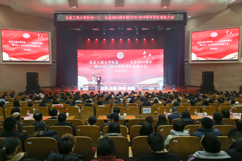 为激励和引导大学生继承和弘扬爱国精神,表彰先进,树立榜样,12月9日,学校纪念一二·九运动84周年暨2018-2019学年学生表彰大会在良乡校区隆重召开。学校校长孙宝国,党委副书记张德玉,副校长谢志华、张耘、郑文红、贾英民、方德英出席活动,并为获奖师生颁奖、为校外荣誉导师颁发证书。相关职能部门负责人、各学院党政领导、教师代表、获奖学生代表、本科生及研究生代表一同参加活动。