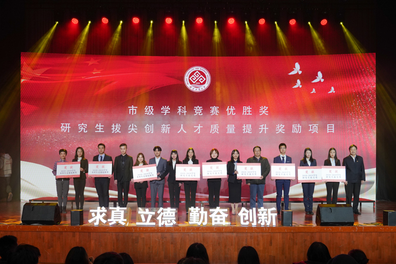 今年,学校共有1060名同学荣获校级及以上荣誉称号,4248人次获得优秀学生奖学金和各类单、专项奖学金。其中,23名本科生、48名研究生获得国家奖学金;347名学生获得国家励志奖学金;517名同学在各类市级及以上学科竞赛中取得优异成绩、387项研究生拔尖创新人才质量提升项目予以实施;8个班级获市级先进班集体,3个学生宿舍获评市级优秀宿舍,大学生民兵连、“不忘初心、牢记使命”主题教育宣讲团获市级优秀学生基层组织。精心制作的颁奖视频充分展示了获奖集体与学生的成长之路与青春风采,一个个刻苦学习、奋战赛场、热心公益的逐梦故事,传递着北工商人志存高远、刻苦求知、踏实做人、追求卓越的精神,深深感染、激励着在场师生,赢得了阵阵掌声。部分获奖同学在现场与大家分享了取得成绩的过程、收获和感悟,表达了对学校、老师辛勤培养、悉心教导的感谢。