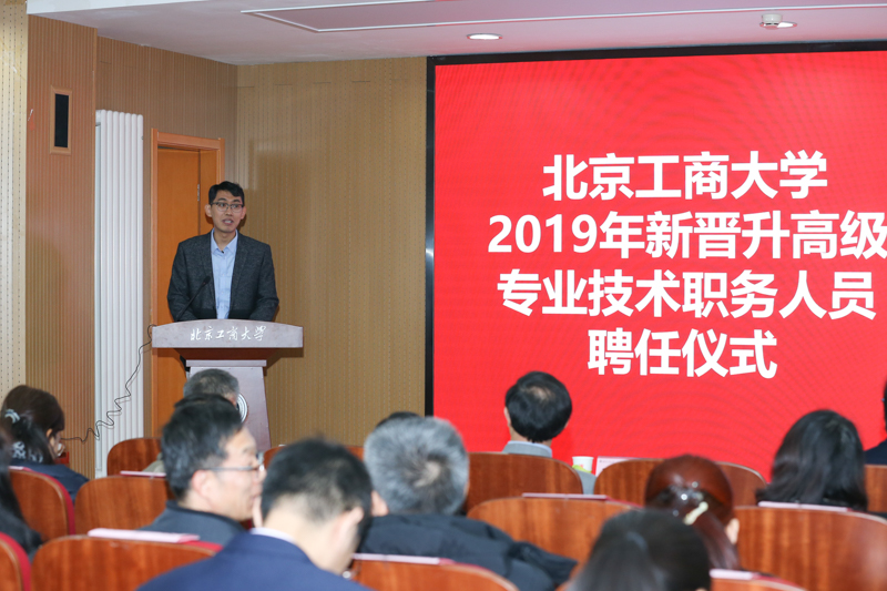 孙宝国代表学校党委和行政对新晋升人员表示热烈祝贺。孙校长指出,学校事业的发展是全校教职工奋斗的结果,学校博士学位授权点获批并跨入北京市高水平研究型大学建设行列的好机遇,为广大教职工提供了更广阔的发展平台和有利政策,大家既是参与者,也是受益者。同时,他对新晋升人员提出了三个方面的要求:一是要了解学校未来发展的目标和任务。到2050年,在建校100周年时,把学校建设成以商科、轻工和食品为特色的世界一流大学是我们的奋斗目标和任务,是学校发展的需要,也是时代的要求,要实现这个目标,需要几代北工商人的共同努力。二是要明确未来的职责和任务,在各自的工作岗位上继续建功立业。学校的中心工作是人才培养,要认真履行好教师职责,落实立德树人根本任务,在教学、科研、学科建设等方面再接再厉取得新突破,切实提升本科人才培养质量。三是“一枝独秀不是春”,除了个人发展外,要融入团队、带好团队,带好年轻人,团队的未来才是学校的未来。最后,他强调学校发展与每一位教职工息息相关,希望大家团结一心、凝心聚力、共同奋斗,为把学校建设成为特色鲜明的世界一流大学贡献自己的智慧和力量。