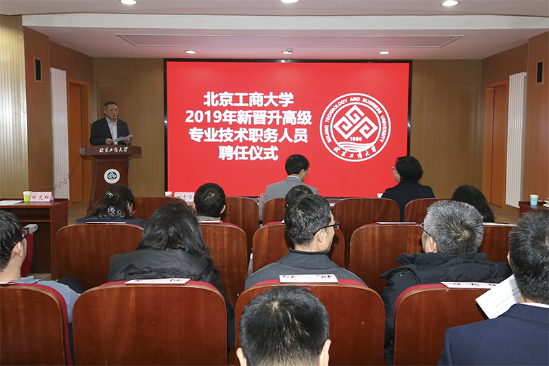12月10日,学校在阜成路校区举行2019年新晋升高级专业技术职务人员聘任仪式。校长孙宝国院士,副校长谢志华、张耘,党委常委、组织部部长张国龙出席聘任仪式。各教学单位党政负责人、相关职能部门及教辅单位负责人以及2019年新晋升高级专业技术职务人员参加聘任仪式。仪式由谢志华副校长主持。