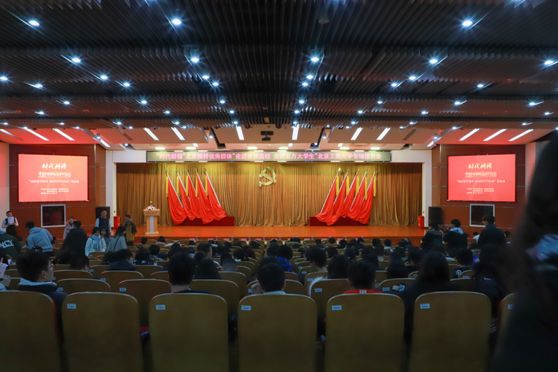 12月17日,“时代楷模——北京榜样优秀群体“走进百所高校、走近百万大学生”我校专场报告会在良乡校区开讲。北京市委宣传部精神文明宣教处副调研员宁彤彤出席报告会,学校学生处处长吕良、党委宣传部副部长杨艳萍、学生处副处长盖晓庆及师生代表500余人现场聆听了报告。