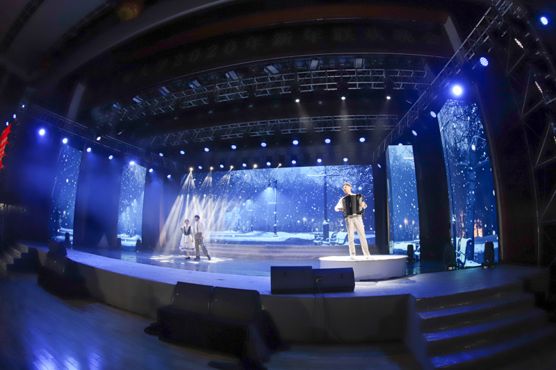 经过近两个月的紧张筹备,在张德玉副书记的亲力指导下,在筹备组和各演职人员的辛苦努力下,2020新年联欢晚会已蓄势待发。此前,新年联欢晚会筹备组先后开展了多次商讨、研究、编排、审查,力求把最精彩的节目呈现给观众。彩排过程中,各部门通力配合,紧密衔接,演员们全力以赴,力图呈现高水平的演出效果。张德玉副书记对整体彩排进行了点评,高度认可并感谢各部门和全体演职人员的辛勤付出,同时对最终晚会演出提出了要求,鼓励大家精益求精,为全校师生送上一场精彩的新年晚会。