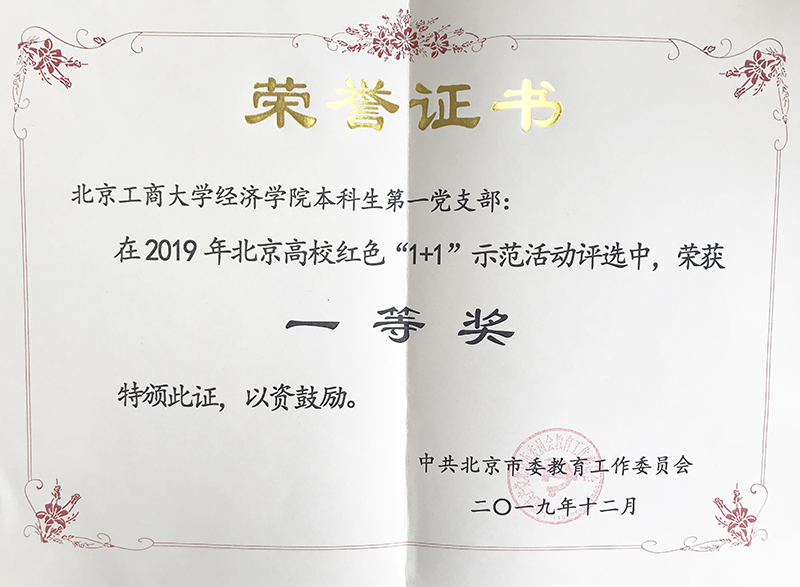 12月31日下午,北京市委教育工委以“不忘初心、牢记使命,做爱国主义精神坚定的弘扬者、实践者、传播者”为主题在北京化工大学召开高校红色“1+1”示范活动展示评选会。市委教育工委宣教处、组织处、市委社工委党建工作处、市委农工委组织处、市委宣传部未成年人思想道德建设工作处、团市委大学部等相关工作负责人应邀担任评委。各高校主管部门负责人、学生党支部代表、社会媒体代表共400多人参加了评审会。我校经济学院本科学生第一党支部代表学校参赛,从北京市53所高校的1184个党支部共建活动项目中脱颖而出,再次斩获一等奖。