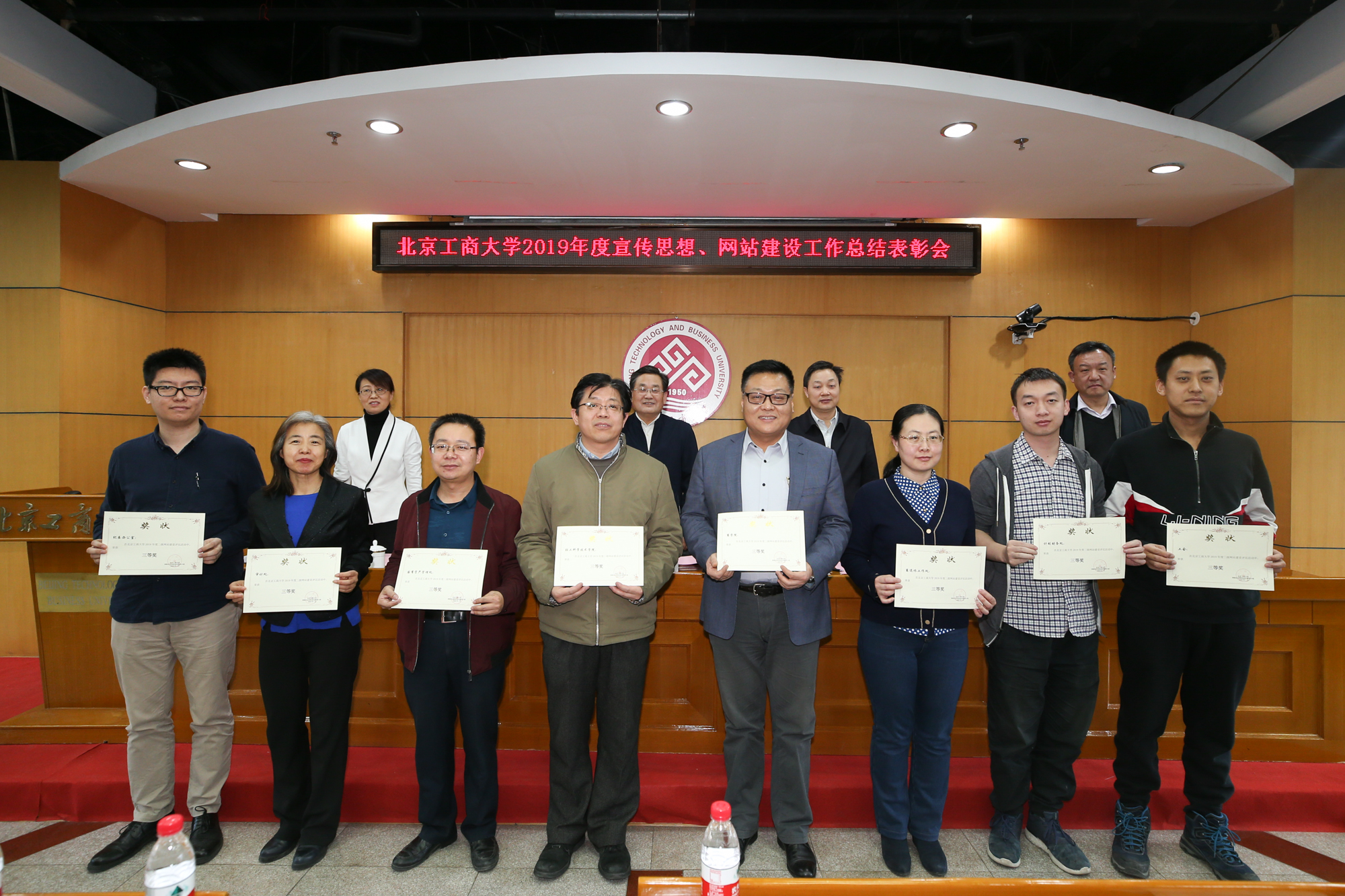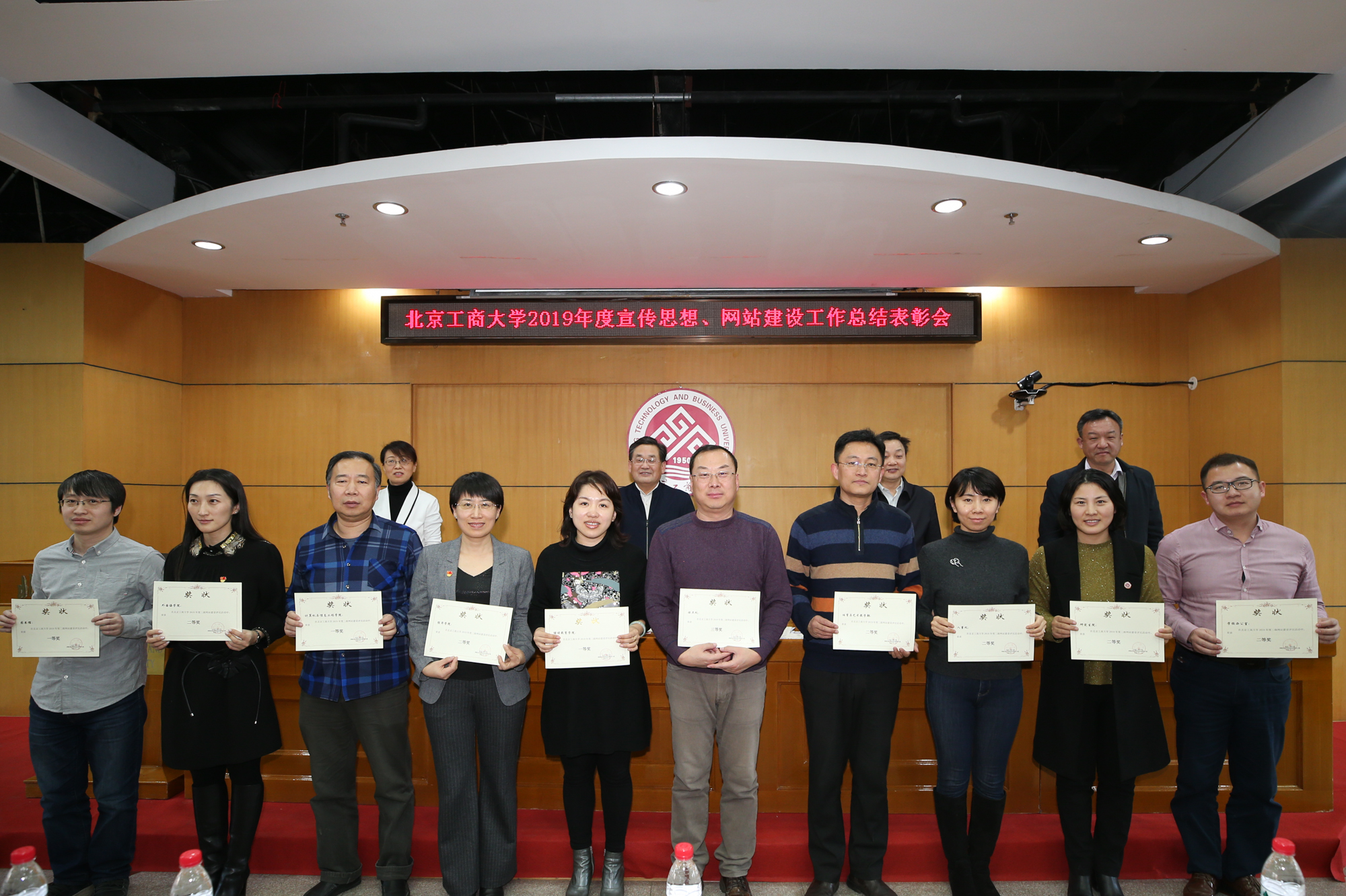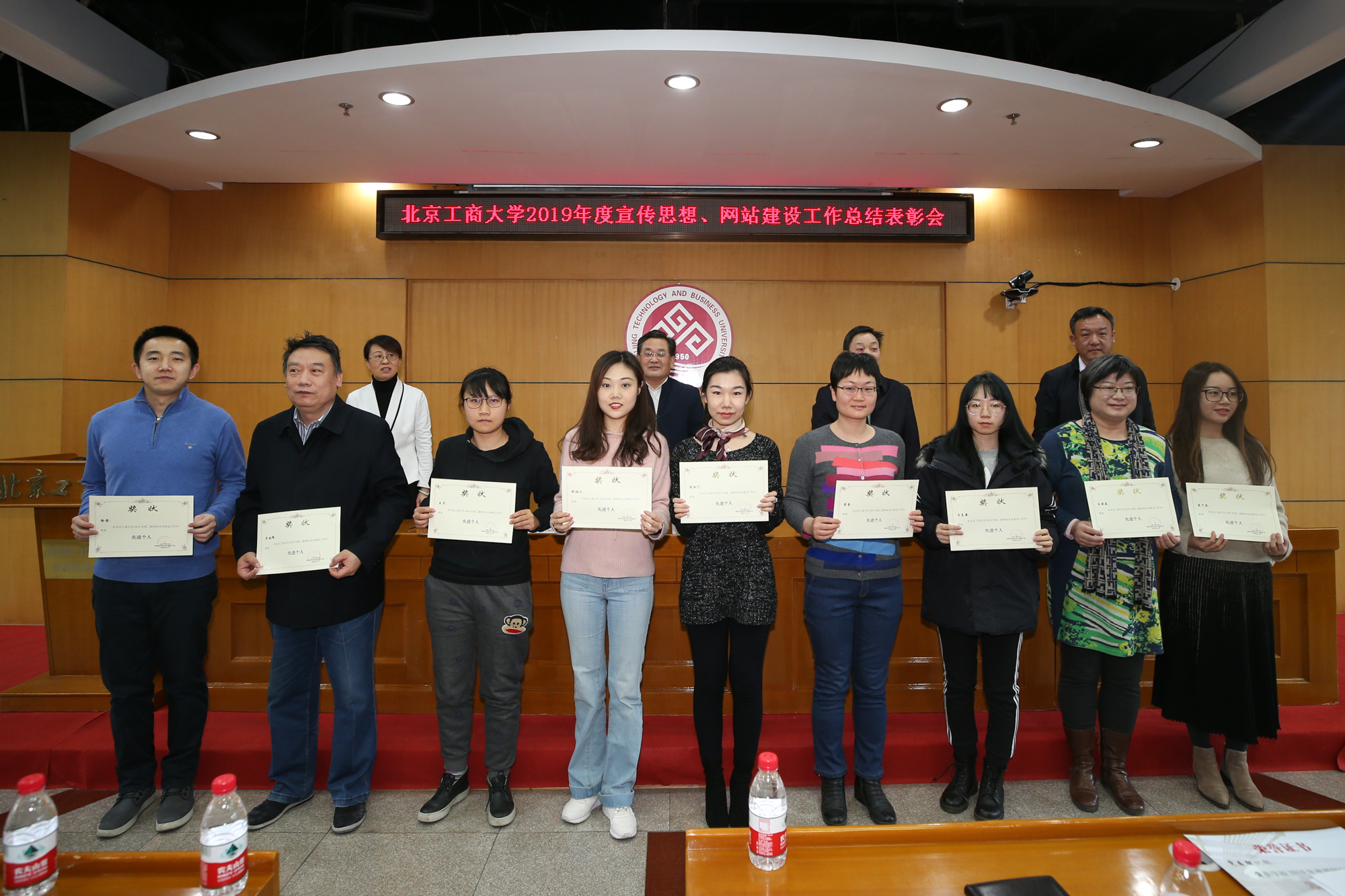 1月10日,学校在阜成路校区召开2019年宣传思想、网站建设工作总结表彰会,总结表彰学校2019年宣传思想、网站建设工作中先进单位和个人,安排部署2020年相关工作。学校党委副书记张德玉、副校长方德英出席会议。学校各部门、学院相关负责人,各单位通讯员、信息员及获奖教职工参加会议。党委宣传部副部长杨艳萍主持会议。