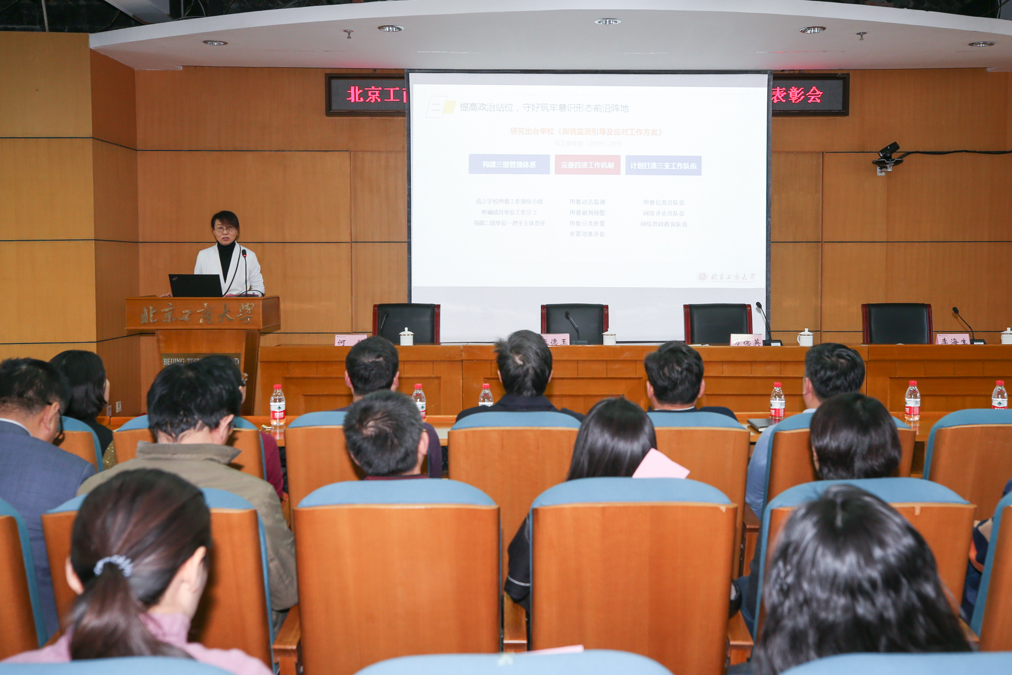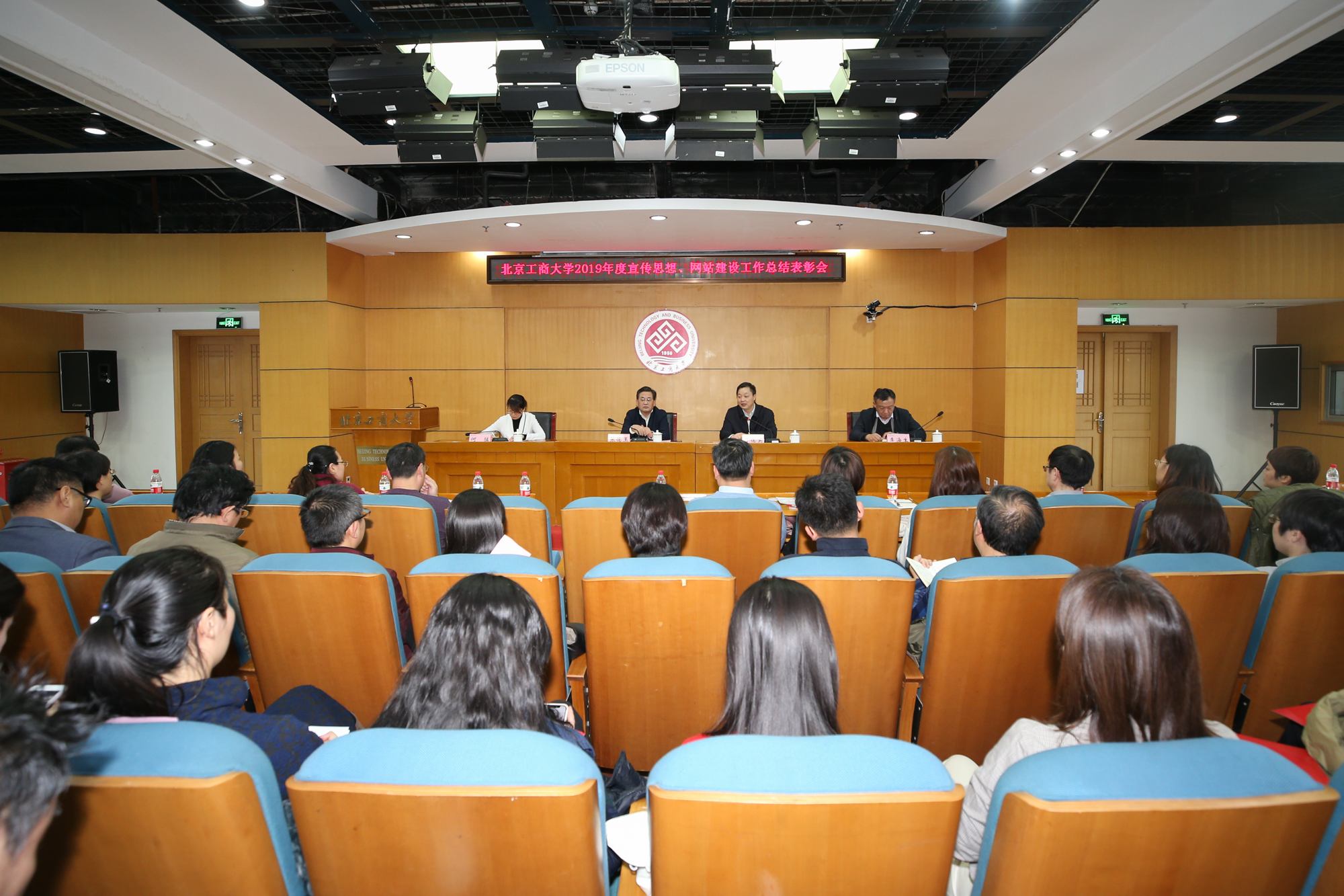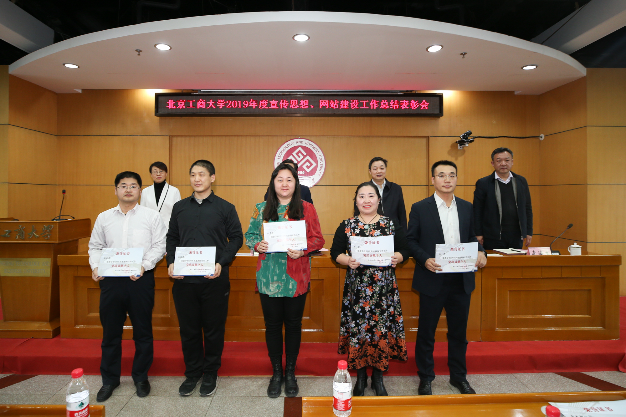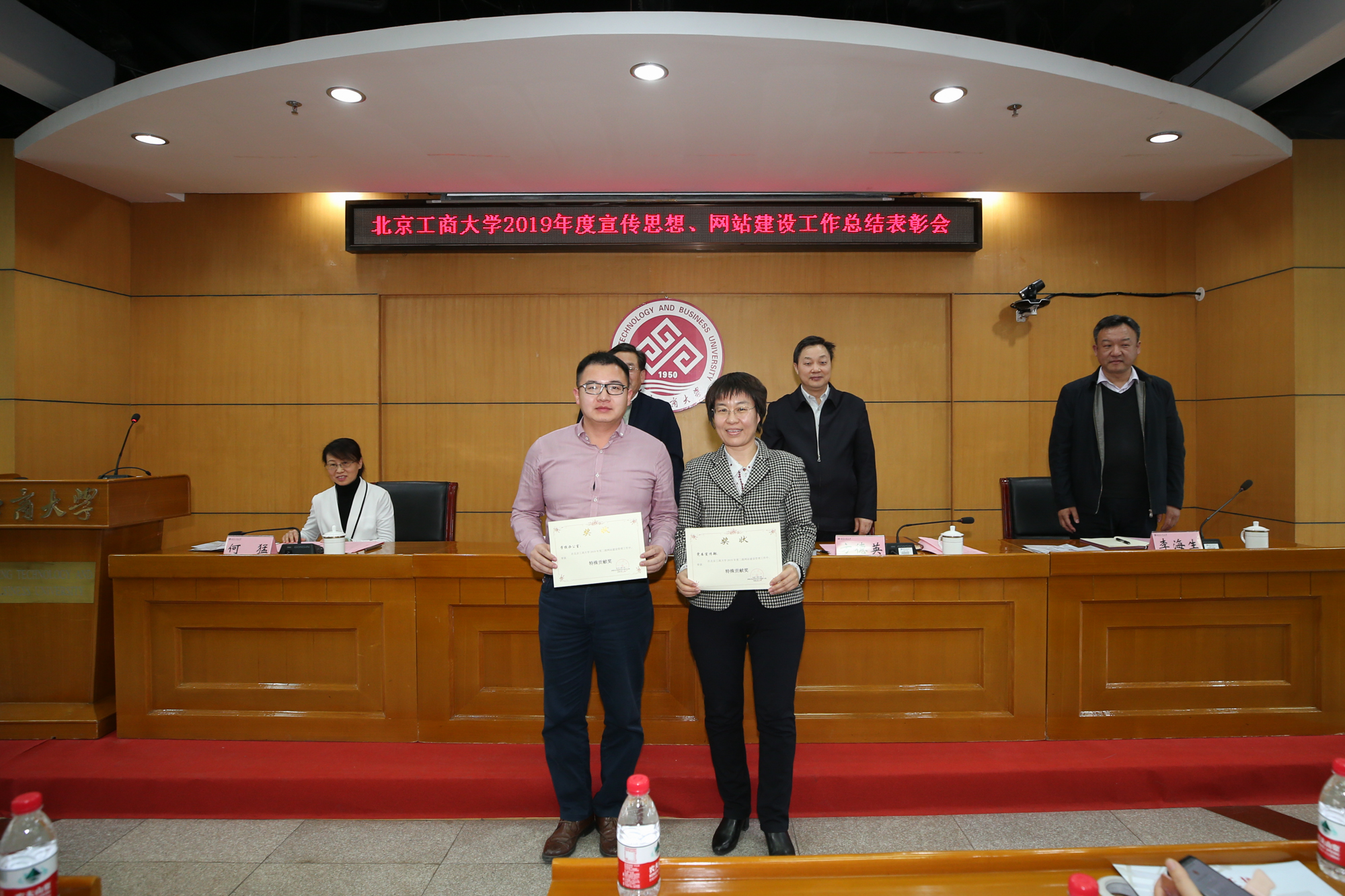 1月10日,学校在阜成路校区召开2019年宣传思想、网站建设工作总结表彰会,总结表彰学校2019年宣传思想、网站建设工作中先进单位和个人,安排部署2020年相关工作。学校党委副书记张德玉、副校长方德英出席会议。学校各部门、学院相关负责人,各单位通讯员、信息员及获奖教职工参加会议。党委宣传部副部长杨艳萍主持会议。