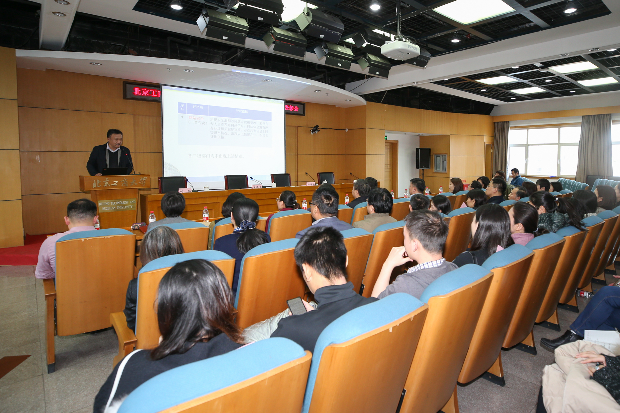 信息网络中心主任李海生从前期工作、网站评比情况、加强网站日常运行管理三个方面对学校2019年度二级网站评比工作进行说明。他谈到,二级网站是基于各部门为单位建立的官方网络平台,承载着信息化教育时代的网络教育、对外宣传、教育管理的基本任务。我校近年来校园网站建设发展迅速,网站群平台共建有80多个二级网站,为了更好发挥网站为学校教育发展、校园宣传、教育教学,实现教育的资源共享、信息交流和协同工作的平台作用,2019年7月19日学校发布了“关于开展北京工商大学2019年二级网站建设评比活动的通知”,明确二级网站评比标准。信息网络中心、党委宣传部(新闻中心)从网站安全、网站管理、网站内容、二级网站安全信息报送、网站访问量五个方面对学校各二级网站进行了评比打分。他表示,2019年学校无信息网络安全事故,感谢各单位负责人及信息员的支持和参与,希望各单位以此次评比活动为契机,以评促建,进一步做好网站内容的更新、加强网站管理和安全工作、做好网站维护管理工作,为我校信息化建设贡献力量。