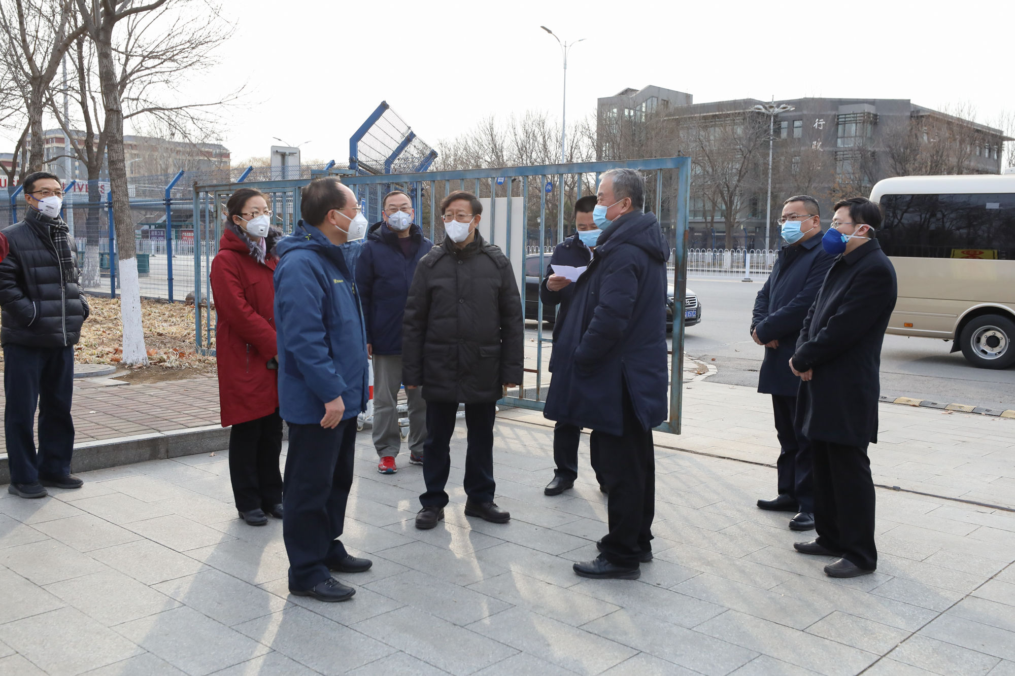 2月1日下午,房山区区委书记陈清一行,采取“四不两直”方式来到我校良乡校区开展疫情防控检查,现场检查督导学校新型冠状病毒感染疫情防控工作措施落实情况。党委书记黄先开、校长孙宝国陪同检查。
