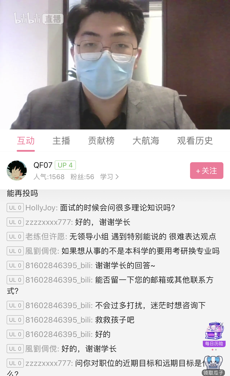 3月18日下午,商学院在深受学生喜爱的B站网络平台推出了“疫”就业空中课堂第二期,邀请世界500强万宝盛华公司HR和毕业生们进行了线上交流指导。直播间主讲嘉宾和毕业生互动频繁,气氛热烈,就职业发展、面试问题、求职准备等进行了充分沟通,1500学生在线观看。 “疫”就业空中课堂是商学院在新冠疫情造成就业形势严峻的情况下,为促进大学生就业而搭建的空中服务平台,旨在为毕业生提供在线指导。3月12日,推出第一期“疫情下求职心理准备、职场礼仪和面试”,邀请学校招生就业处李丹丹主讲。财务161班张冬昀说:“我对面试容易紧张,边看直播边做笔记,很有收获,心里踏实了许多,找工作前再多多练习,争取在面试不掉链子不紧张。”财务162班林莉表示“直播形式很新颖,也能和老师实时互动,这些问题也是我近来困惑的,疫情期间不能实习在家有些焦虑,但有学校帮忙解答问题感觉很温暖,感谢老师们,相信中国力量。” 为了做好“疫”就业空中课堂,学院提前对毕业生进行了调查,从学生关心的近百条问题中整理出30余条,如“疫情之下,如何扩大自己的择业机会?”“疫情下还要择业吗?还是先就业不择业?”“线上面试礼仪、流程、注意事项等,视频面试需要如何做准备”“在目前企业招聘热度不足的情况下,我们如何找到准确的就业信息?”“大学生创业有哪些政策”等问题在直播中有针对性地解答。“疫”就业空中课堂为毕业生开创了一个获得就业知识的新平台,引导学生树立信心,掌握技能,顺利就业,学院还将陆续推出“疫”就业空中课堂。 新冠肺炎疫情以来,学院一方面组织学生全力以赴打好疫情阻击战,一方面多措并举提供暖心服务,争取将疫情造成的不利影响降至最低。学院简化了就业手续,指导毕业生线上提交材料,在线完成签约手续,搭建暖心空中服务。同时,学院关注学业、家庭经济困难、少数民族、湖北籍和在湖北等特殊群体,建立“一人一册”和就业工作台账,密切关注思想动态,开展“商梦花开”学业辅导,对湖北籍、在湖北、经济困难的毕业生保持常态指导,优先推荐就业,有针对性开展在线辅导。 学院积极联系用人单位,及时发布招聘信息,春节后通过“商院就业”公众号和就业信息群推送就业信息200余条,举办线上企业宣讲10余场。学院还组织毕业班围绕职业发展、就业导向开好勇敢战“疫”主题班会。毕业班在班主任组织主持下,学习防疫知识,预期疫情后的经济发展和职业需要,引导学生科学理性看待疫情,以务实和积极的心态迎接职场人生。 此外,学院推出了“职场学长学姐答疑”系列,邀请就业、出国、考研等有显著成效的毕业校友撰写文章,开展答疑和职场经验介绍,以帮助毕业生了解职场、准确定位,目前推出两期,阅读量超过1000人次。 商学院把大学生就业作为人才培养和民生工作,还将根据毕业生的需要,及时调整、推出有效的就业帮扶措施,随时解答毕业生的问题,努力克服疫情影响,迎来人人就业的“春天”。