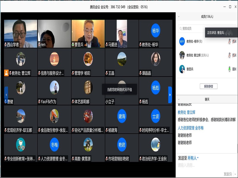 5月16日下午,教务处召开课程思政首批课程建设培训会,邀请马克思主义学院副院长姚洪越副教授担任此次培训的主讲人。各教学单位教学院长、首批建设课程负责人及授课教师等140余人在线参加会议。会议由教务处处长曹显兵主持。