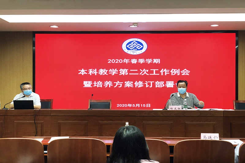 5月15日,学校召开2020年春季学期第二次本科教学工作例会暨培养方案修订部署会,副校长郑文红出席并主持会议。各学院(部)院长(主任)、教学副院长、本科专业建设负责人及本科教学秘书,教务处、招生就业处、国际交流与合作处、图书馆、信息网络中心等部门负责人及本科教学督导专家代表参加会议。