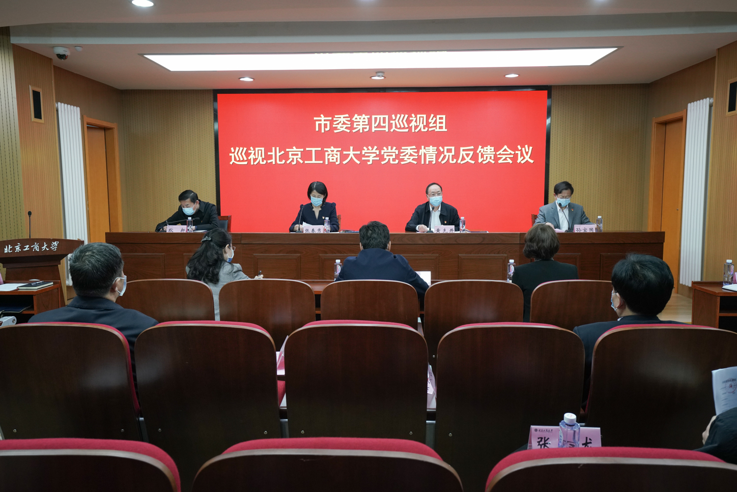市委第四巡视组副组长耿新和巡视组、巡视办有关同志,市纪委市监委有关同志,北京工商大学领导班子成员等出席会议;学校相关职能部门负责人、教职工代表等有关人员列席会议。