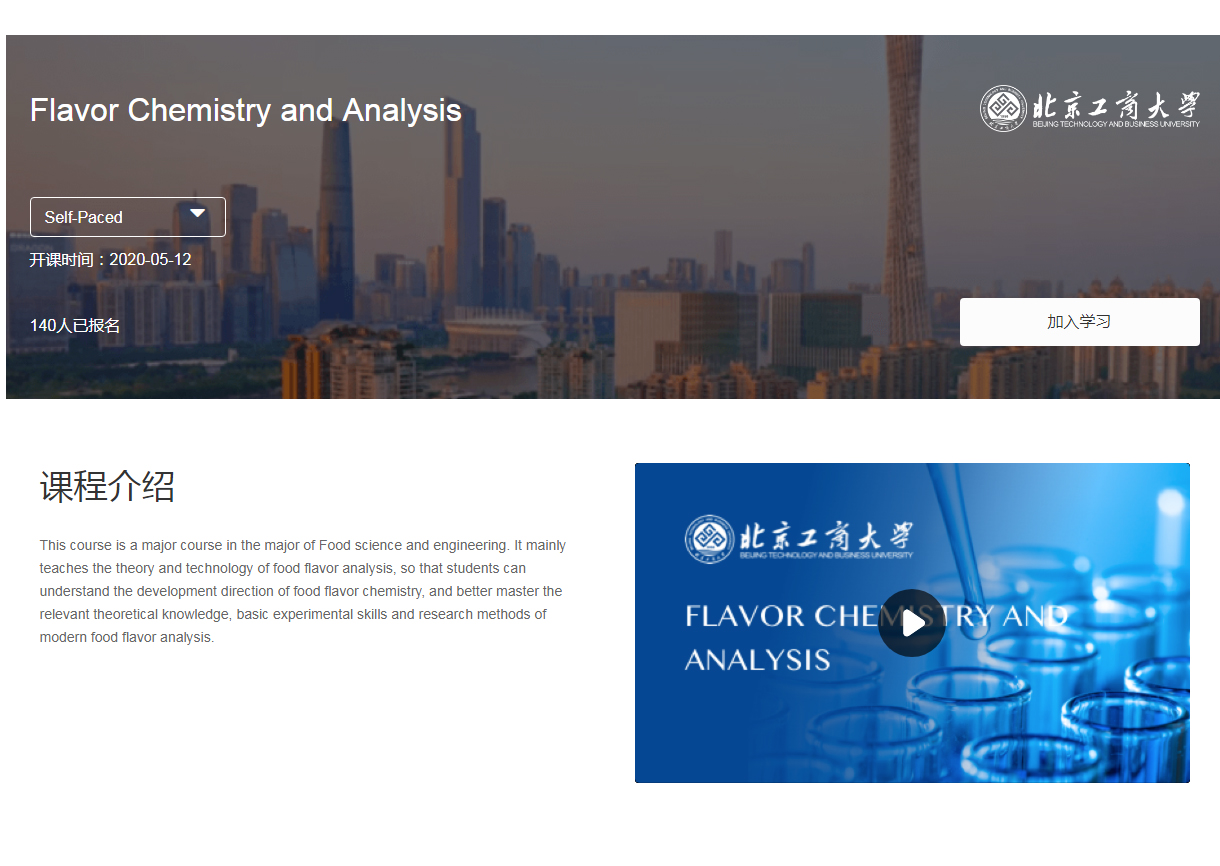 近期,高校在线教学国际平台上线暨“学堂在线”国际版发布会在京举行,我校“食品风味化学与分析”在线开放课程成功上线“学堂在线”国际平台,成为教育部首批中国高校在线教学国际平台线上课程。