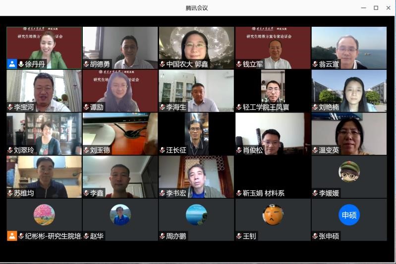 6月29日、30日,研究生院在线召开了2020级研究生培养方案论证评审会。本次评审会邀请校外专家、校内专家、各学院分管院长、学科负责人、研究生教学秘书等共90余人参加会议。会议由研究生院院长徐丹丹主持。