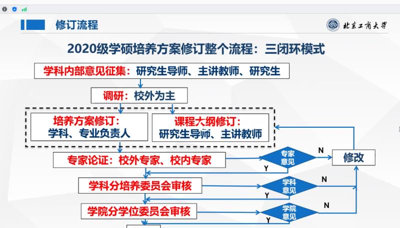 校外专家对我校的培养方案修订工作予以肯定,认为北京工商大学在学校进入高水平研究型大学发展的新阶段,开展研究生培养方案的修订工作,具有重要的意义。所汇报的各学科培养方案较好地落实了教育部《高等学校课程思政建设指导纲要》的文件精神,突出了立德树人工作的重要地位;这次修订的