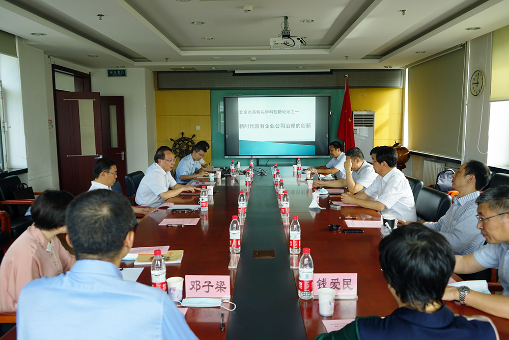 邓子梁教授介绍了北京市高精尖学科创新论坛的成立背景,本论坛是四校基于服务北京四个中心建设和重点学科发展需求共同发起的前沿学科论坛,论坛主题将围绕主流学科和重大前沿话题定期展开研讨。商学院院长毛新述教授介绍了国有企业公司治理论坛的筹备情况,并以“新时代国有企业公司治理:探索与证据”为题报告了在国有企业混合所有制改革、董事会建设、高管薪酬激励等方面取得的最新研究成果。