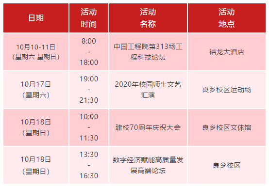 为方便社会各界宾朋和海内外广大校友出席、参加各类校庆活动,现将校庆期间活动安排公告如下: