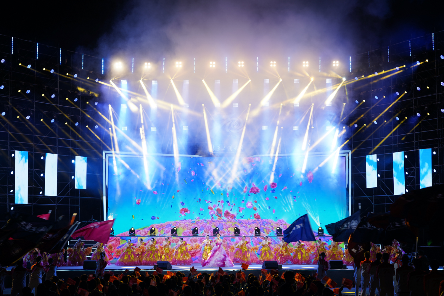 在《北京工商大学校歌》激昂悠扬的歌声中,校园师生文艺汇演落下帷幕。