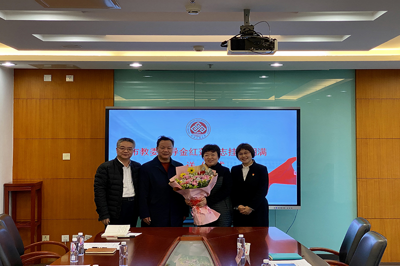 党委组织部部长武晶晶代表学校就金红莲同志挂职情况作报告,她表示金红莲同志具备很高的思想政治素质、理想信念和政治立场坚定;工作敬业、能力突出,工作业绩显著;工作作风勤勉踏实、为人谦和有礼、群众基础好;严格遵守中央八项规定精神和廉洁从政各项规定,严格遵守学校各项规章制度,以身作则、严于律己,廉洁自律。武晶晶向金红莲对学校的辛苦和作出的积极贡献表示诚挚的感谢。