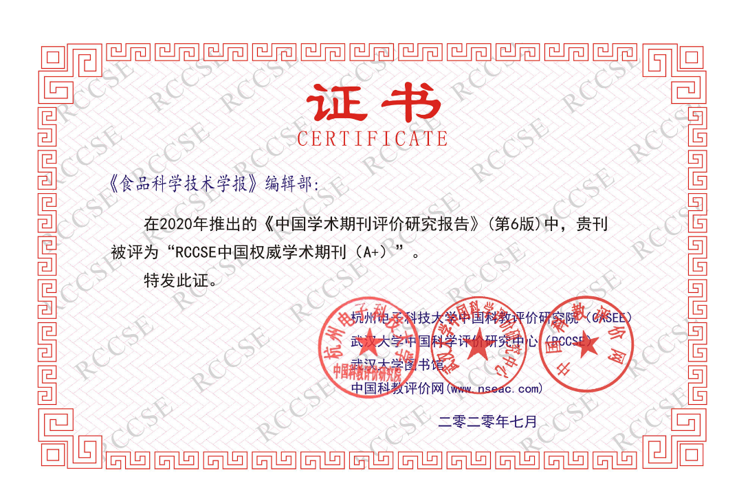近日,RCCSE《中国学术期刊评价研究报告》(第6版)正式发布,我校主办的《食品科学技术学报》被评为“RCCSE中国权威学术期刊(A+)”。在食品科学技术学科的51本中文期刊中,仅有3本期刊入选“权威期刊”(A+),《食品科学技术学报》排名第2位。
