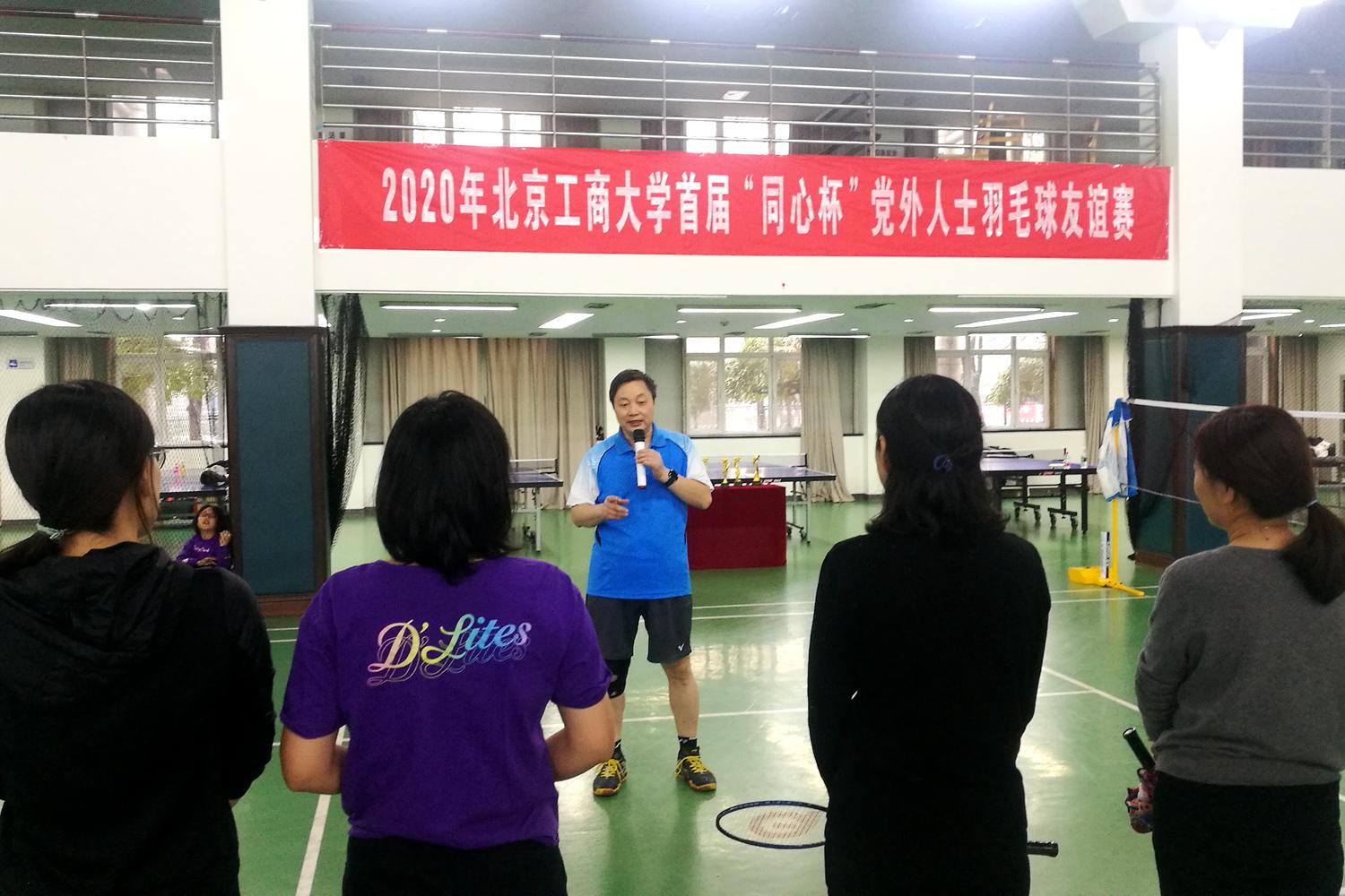 11月21日,学校首届“同心杯”党外人士羽毛球友谊赛在良乡校区文体馆举行,来自民盟、民进、民建、致公党、九三学社、民革的20余名党派成员参加本次活动。副校长方德英出席并致开幕词,党委统战部部长张国龙、体育与艺术教学部副主任宋煜参加活动。本次友谊赛由党委统战部主办,民盟北京工商大学支部承办,体育与艺术教学部协办。