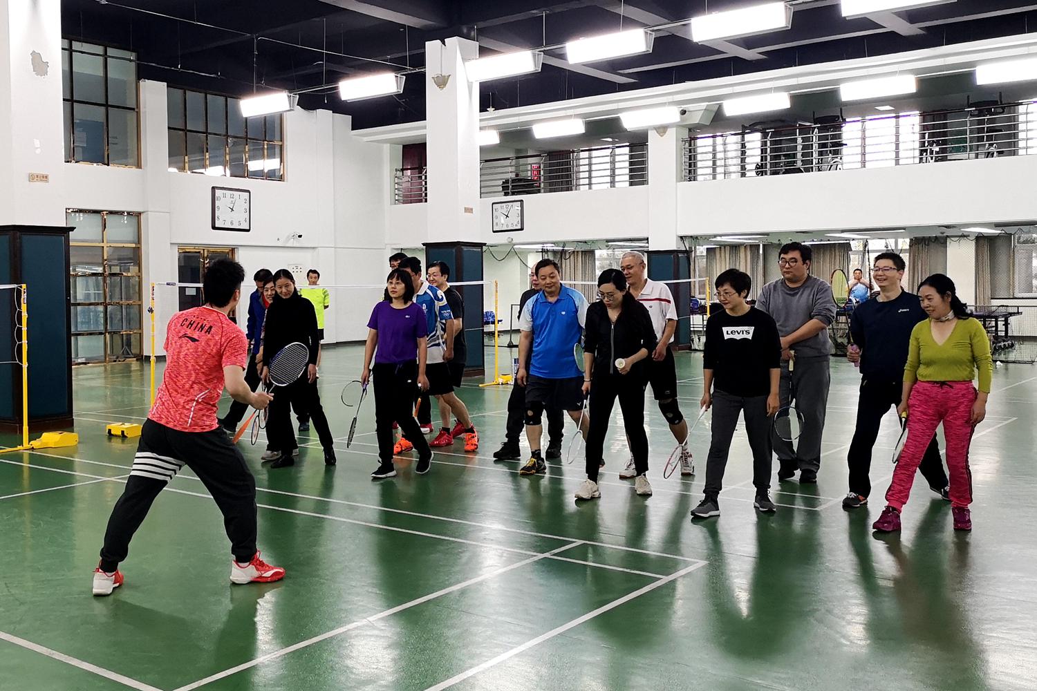 为了帮助大家提升羽毛球技术水平,学校邀请了体育与艺术教学部教师、全国大学生羽毛球锦标赛男团冠军、北京高校羽毛球锦标赛男双冠军铁春元进行赛前指导。他为参赛队员生动讲解了羽毛球基本球拍握法、发球动作及要领等,并进行了精彩示范。随后,民盟北京工商大学支部主委、体育与艺术教学部郭杰宣布比赛规则,并带领大家进行赛前热身。