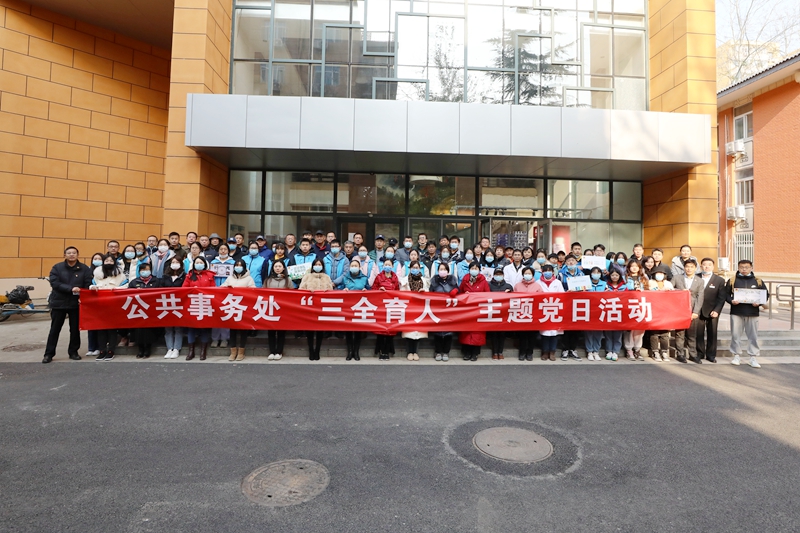 为贯彻落实学校《北京工商大学“三全育人”综合改革实施方案》《北京工商大学开展 “担当有为、治理有方、保障有力”作风建设年活动实施方案》,12月1日,公共事务处党总支在阜成路校区开展“三全育人”系列主题活动暨“三全育人”党日活动。公共党总支书记张晓磊、处长韩军、副处长陶伟和梁克勇,公共事务处全体党员、发展对象、科室服务中心骨干力量、学生志愿者及物业负责同志共80余人参加了活动。