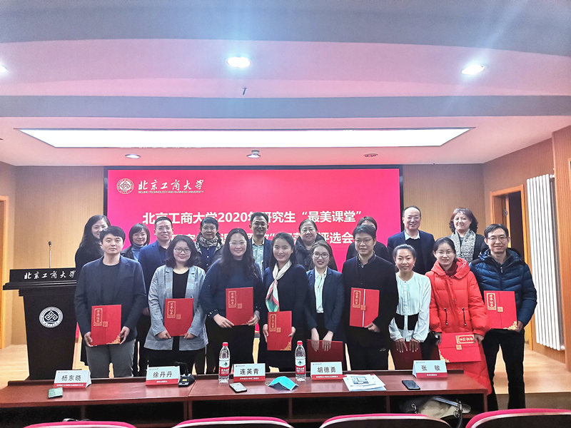 为深入学习贯彻习近平总书记在学校思想政治理论课教师座谈会上的重要讲话精神,按照《北京工商大学推进课程思政建设实施方案》工作要求,全面总结学校研究生“课程思政”建设成效,12月2日,学校组织了首届研究生“最美课堂”暨“课程思政”示范课的评选活动。党委副书记董竹娟出席会议。对外经贸大学研工部部长连英青,首都师范大学研究生院副院长胡德勇,首都师范大学研工部副部长师保国,北京理工大学研究生院质量办公室主任杨东晓应邀出席。学校研究生教育督导赵亚平、翁丽娟,教务处、人事处、各学院领导以及各学院学生代表等50名评委和37门参赛课程教师参加了评选会。评选会由研究生院院长徐丹丹主持。