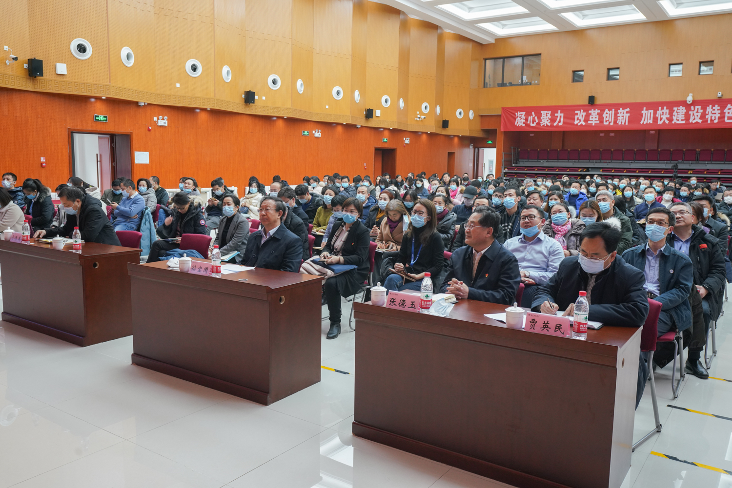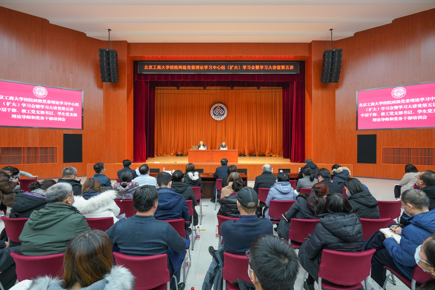 为深入学习贯彻党的十九届五中全会和市委十二届十五次全会精神,12月23日下午,学校在阜成路校区举行校院两级党委理论学习中心组(扩大)学习会暨“学习大讲堂”第五讲,以及中层干部、教工党支部书记、学生党支部理论导师和党务干部集中培训。学校领导孙宝国、张德玉、贾英民、方德英出席。校院两级党委理论学习中心组成员、中层干部、教工党支部书记、学生党支部理论导师、专职组织员近300人参加。讲座由学校党委副书记张德玉主持。