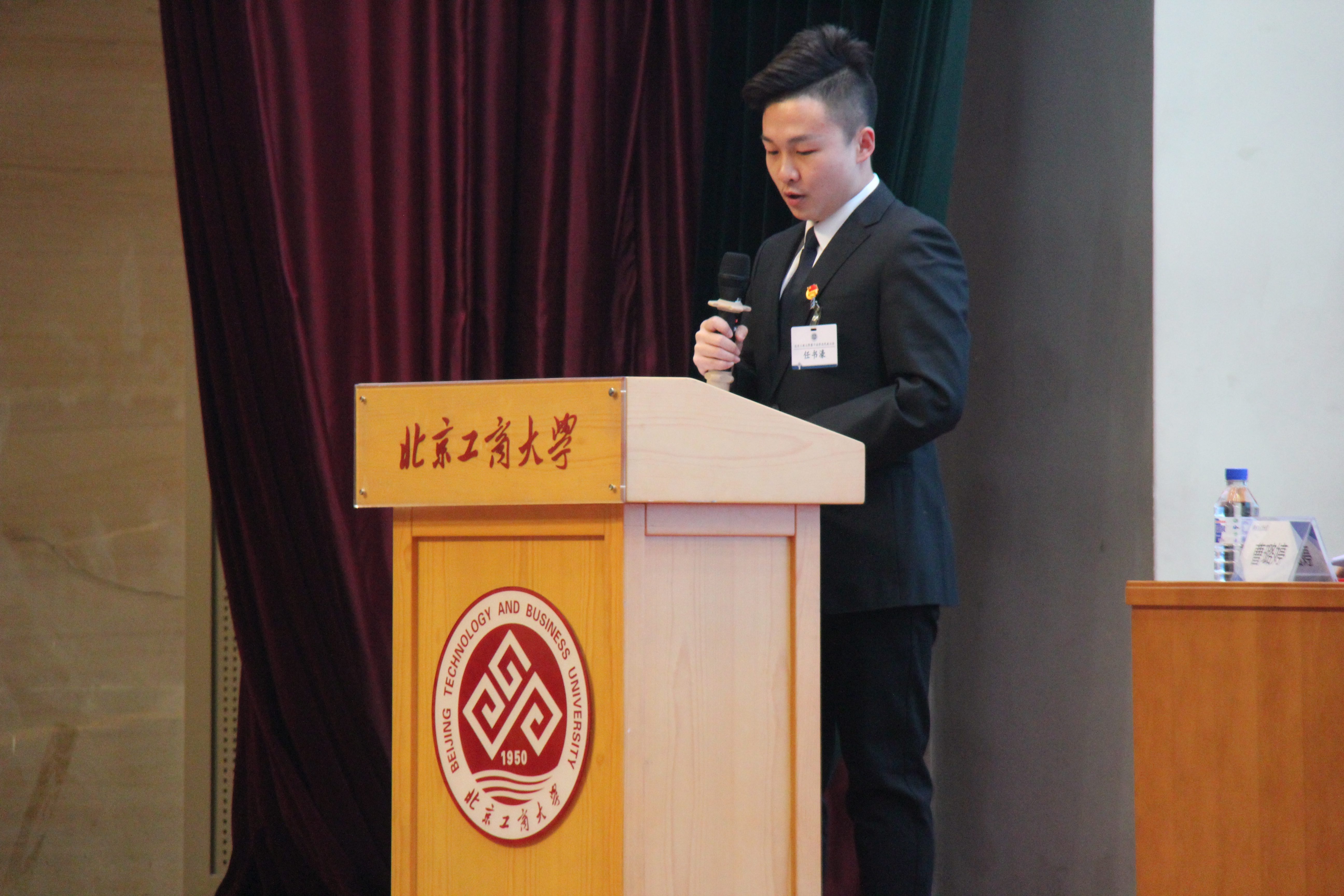 任书濠代表兄弟院校向我校第十次学生代表大会的隆重召开表示热烈的祝贺,并向学校建校70周年走过的辉煌历程表示热烈的祝贺!他表示我们站在新的历史起点,面对百年未有之大变局,风云变幻的国际形势、决战决胜的历史重任,各级学生会组织要始终坚守初心使命、主动拥抱时代、深化改革创新,在习近平新时代中国特色社会主义思想的指引下,团结一致、凝心聚力,以引领健康向上的校园文化、提供全面有效的服务为出发点,促进内部团结、着力制度建设、提高工作效率、激发创新活力、塑造亲和形象,切实有效地推动学生会的全面建设,用实际行动书写新时代学生会组织的青春答卷。同时也希望北京工商大学学生会与各兄弟高校能够继续保持联络沟通,加强合作,共同肩负起时代赋予青年的重任。