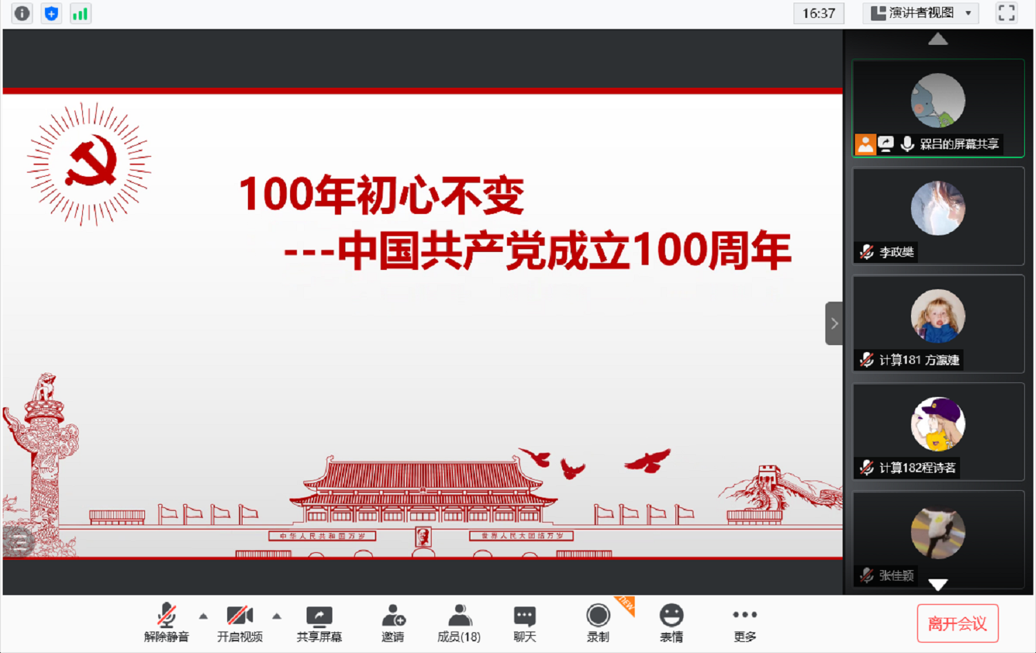 在讨论交流环节,各学院党校班结合本学院实际情况,充分发挥主观能动性,分别围绕“100年初心不变——中国共产党成立100周年”和“抗‘疫’实践彰显中国特色社会主义制度的显著优势”两个主题开展了形式多样的线上活动。