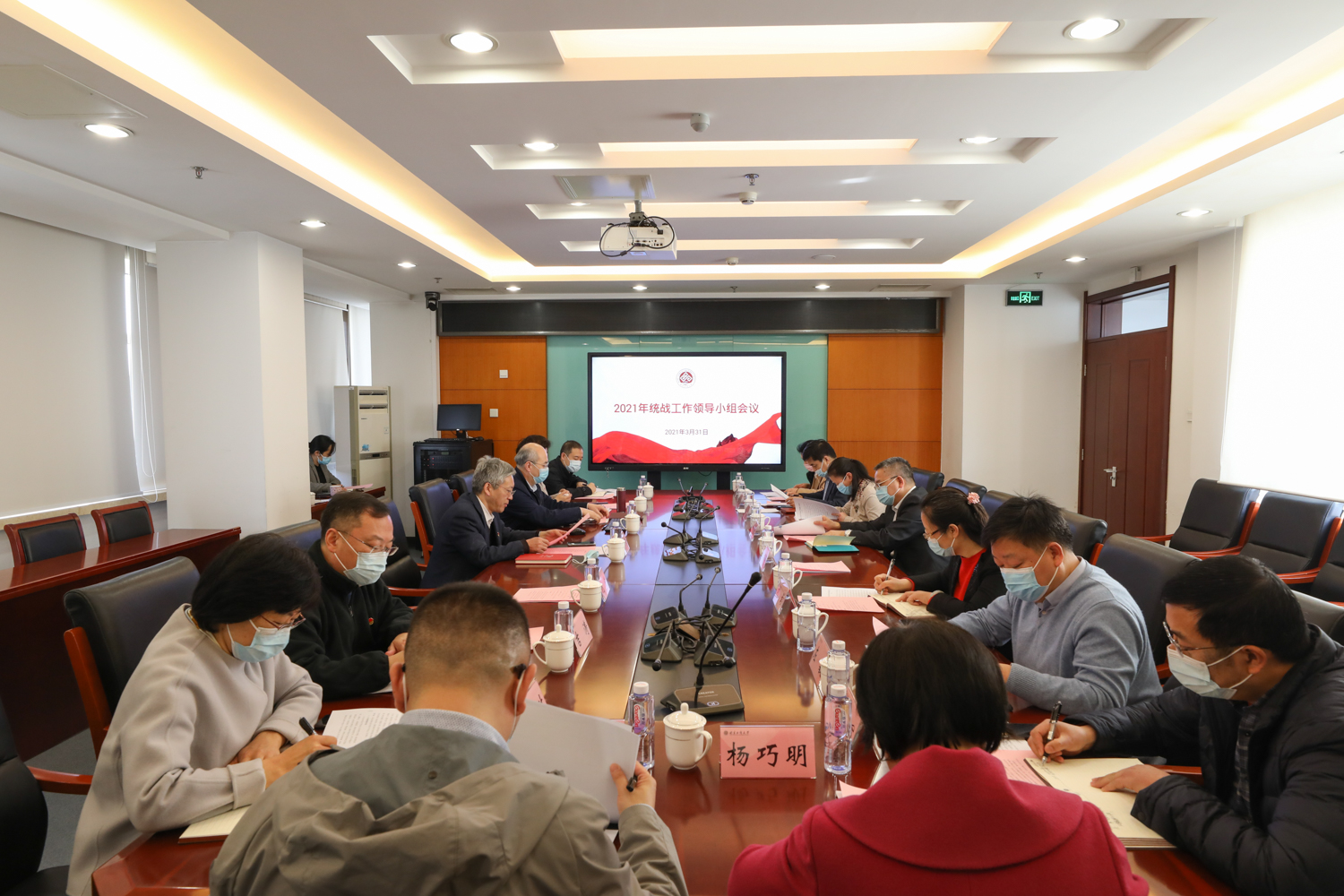 党委统战部部长张国龙传达了2021年全国及北京市统战部长会议精神,汇报了《2021年学校党委统战工作要点(讨论稿)》,带领大家一起学习了《北京市宗教事务条例》,并就近期民族宗教专项工作安排进行了部署。领导小组成员单位负责人就统战工作、民族宗教工作中存在的问题和建议进行交流和研讨。