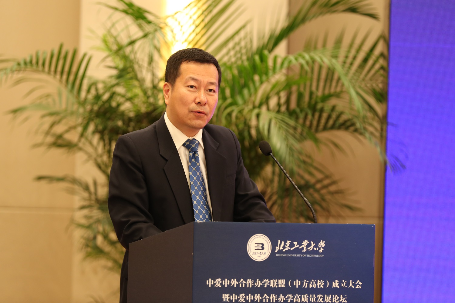 10月26日,“中爱中外合作办学联盟(中方高校)成立大会暨中爱中外合作办学高质量发展论坛”在北京工业大学举行。北京市委教育工委副书记、市教委主任李奕,中国教育国际交流协会学术交流与研究部副主任李阳,沈阳大学校长、中国教育国际交流协会中外合作办学专业委员会副理事长、全国中外合作办学联席会主席赵彦志,中国高等教育学会中外合作办学研究分会理事长、厦门大学中外合作办学研究中心主任林金辉以及来自35所兄弟高校中外合作办学领域的相关人士参加了此次活动。我校党委常委、副校长刘敏华受邀为联盟揭牌并进行主旨发言。