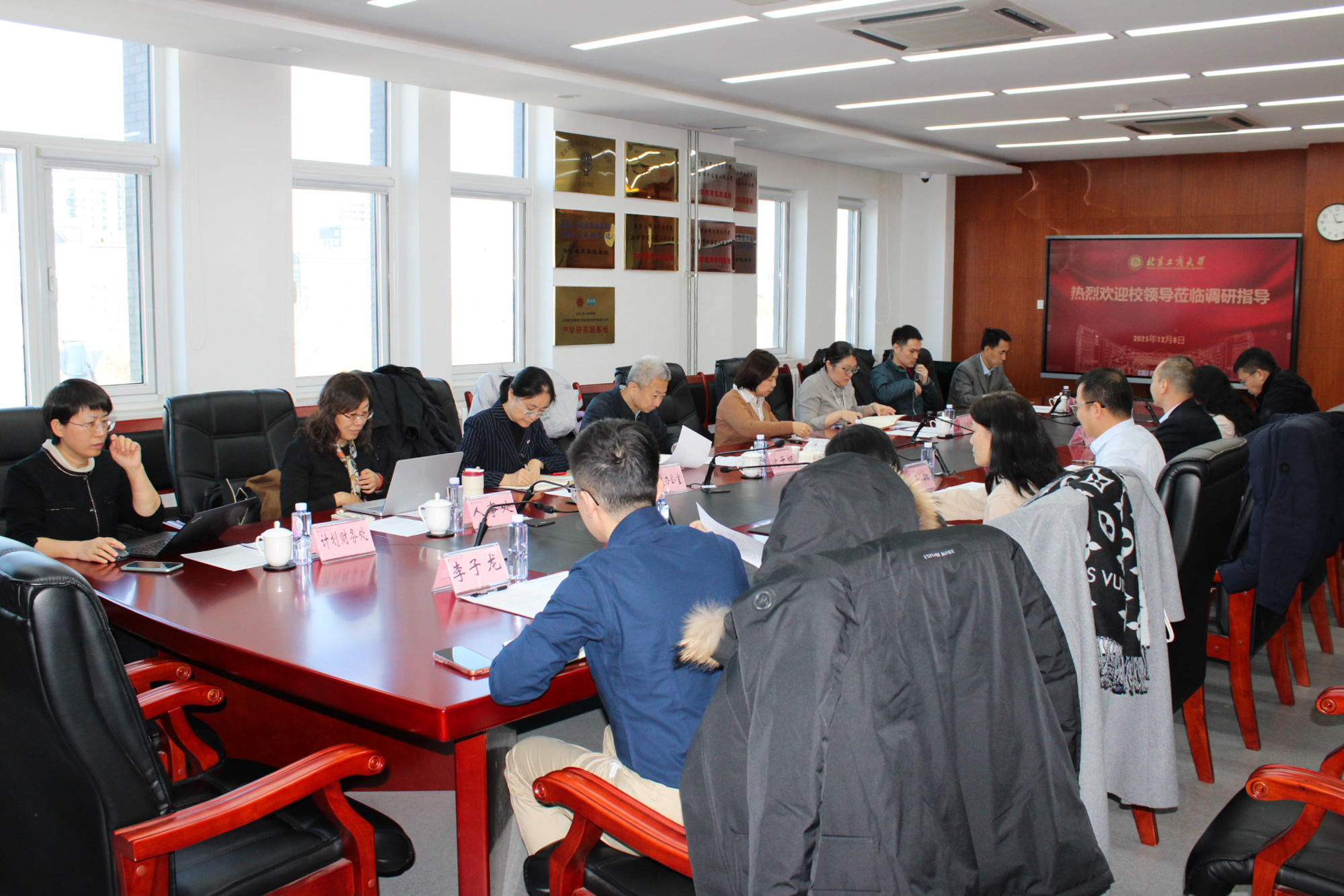 党政办公室、党委组织部、发展规划处、人事处、计划财务处、国有资产管理处、教务处、招生就业处、研究生院等部门负责人陪同调研。