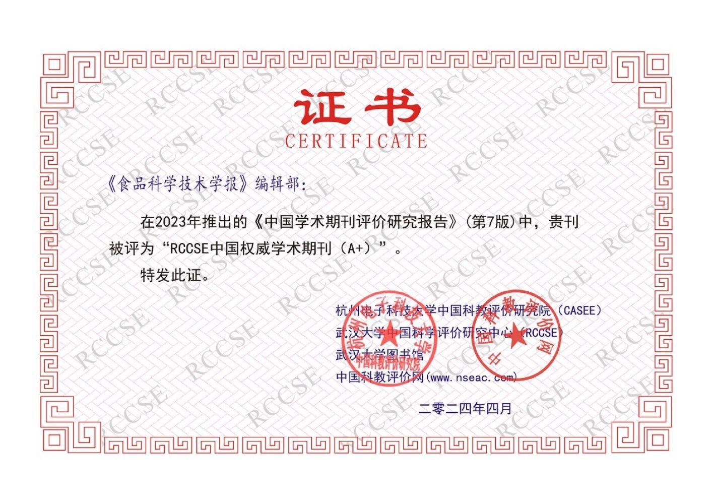 近日,我校《食品科学技术学报》被评为“RCCSE中国权威学术期刊(A+)”,位列48种食品科学技术类期刊第3名。