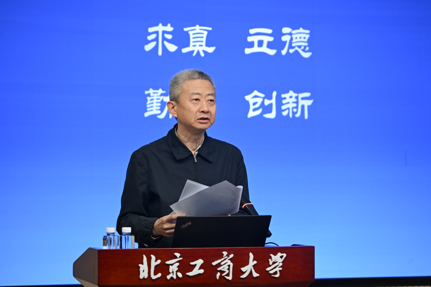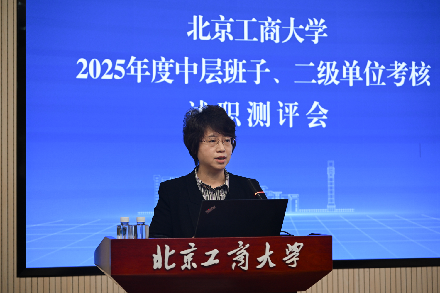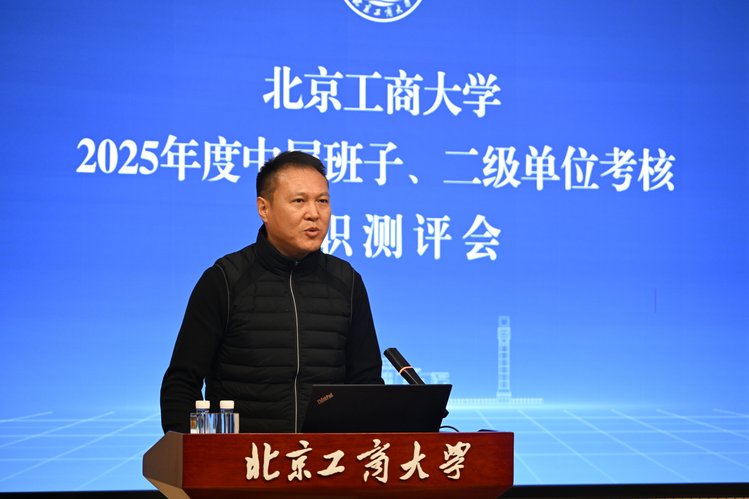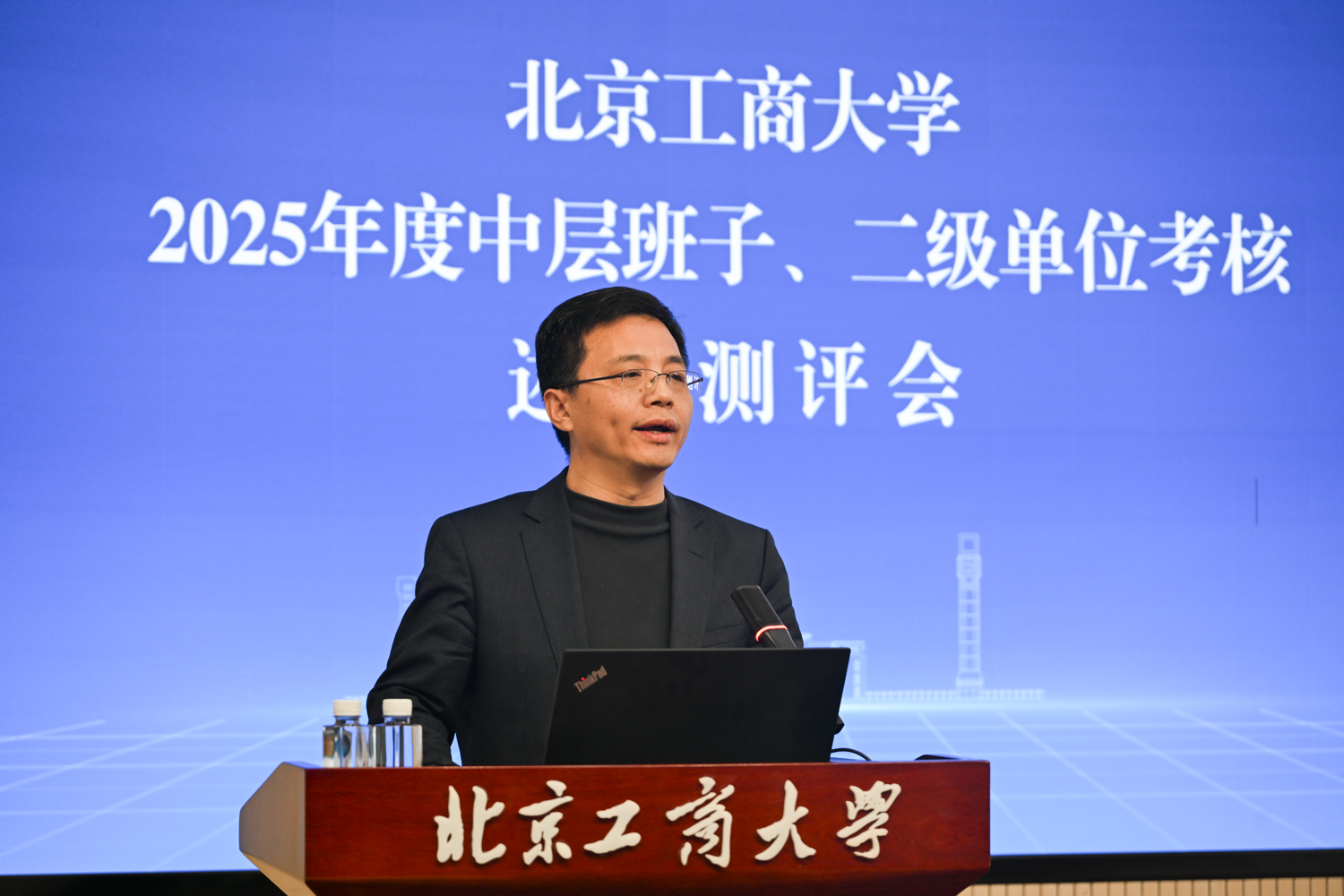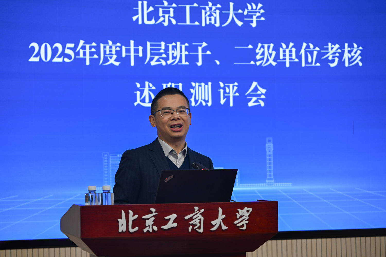沈千帆作总结讲话。他充分肯定了2025年全校上下以“工商一体化”发展理念为引领,在加快推进“双一流”学科创建和高水平研究型大学建设方面取得的各项成绩,同时就2026年工作提出三点要求:一是要提高政治站位,筑牢思想根基;二是要扎实推动工作,强化担当实干;三是要严守纪律底线,永葆清廉本色。他号召,全体领导干部要以此次述职为新起点,履职尽责、锐意进取,切实把“十五五”规划“蓝图”转化为学校建设发展的“施工图”和“实景图”,共同谱写北京工商大学发展新篇章!