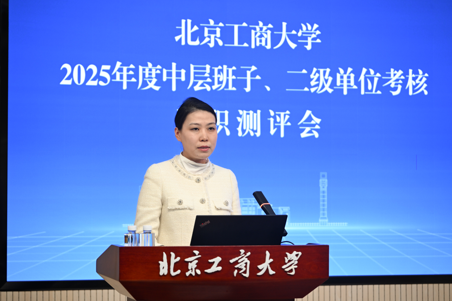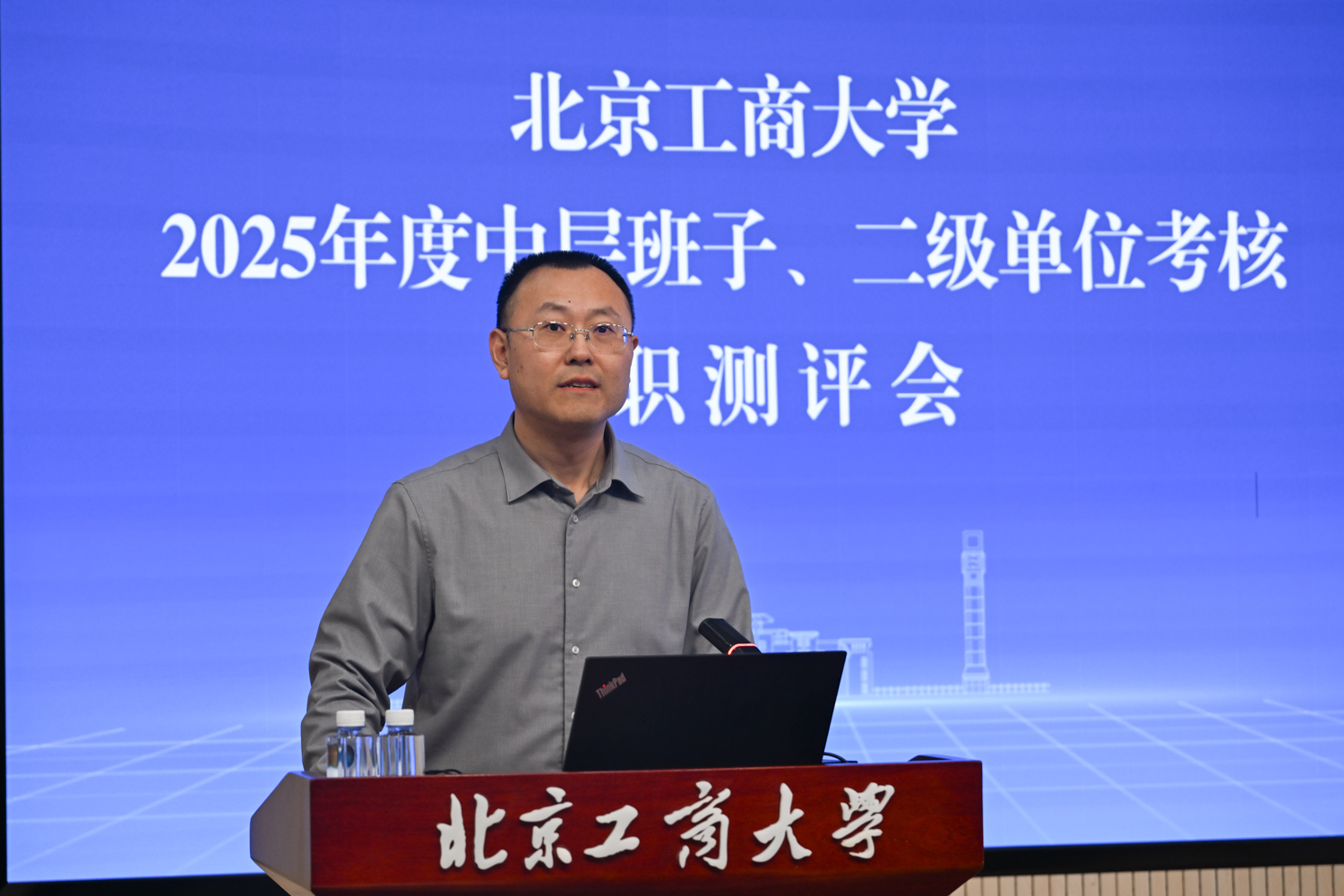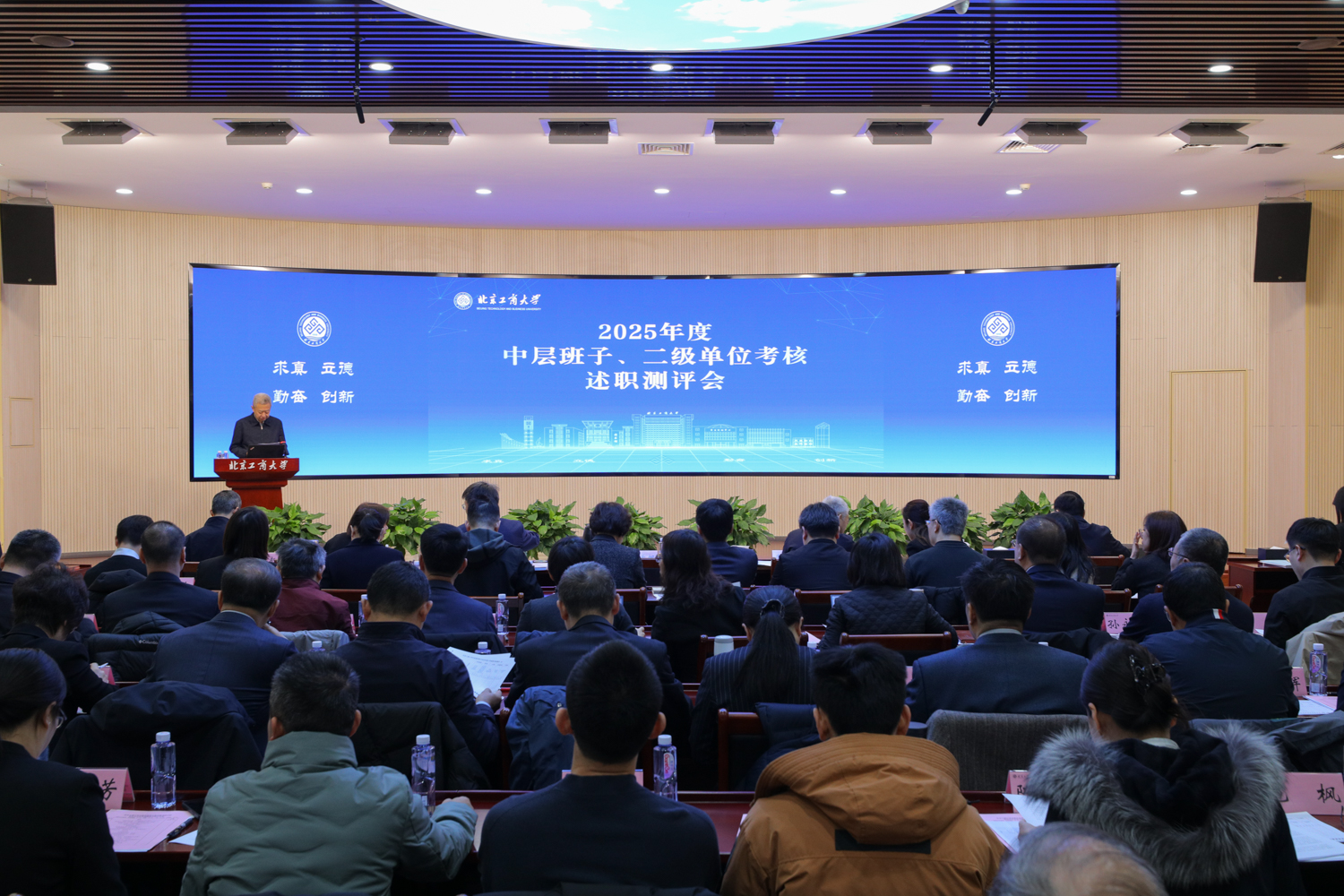 根据有关工作安排,各二级单位负责人依次进行年度工作述职。各单位紧扣自身职责定位,从亮点提炼、规律总结、问题分析、举措谋划等方面进行汇报,既全面呈现了年度工作成效,也深刻检视了存在的不足与差距,同时明确了未来工作的发展方向与具体规划。与会人员分别针对2025年中层领导班子年度考核和非教学单位分类卓越考核评价开展了现场测评。