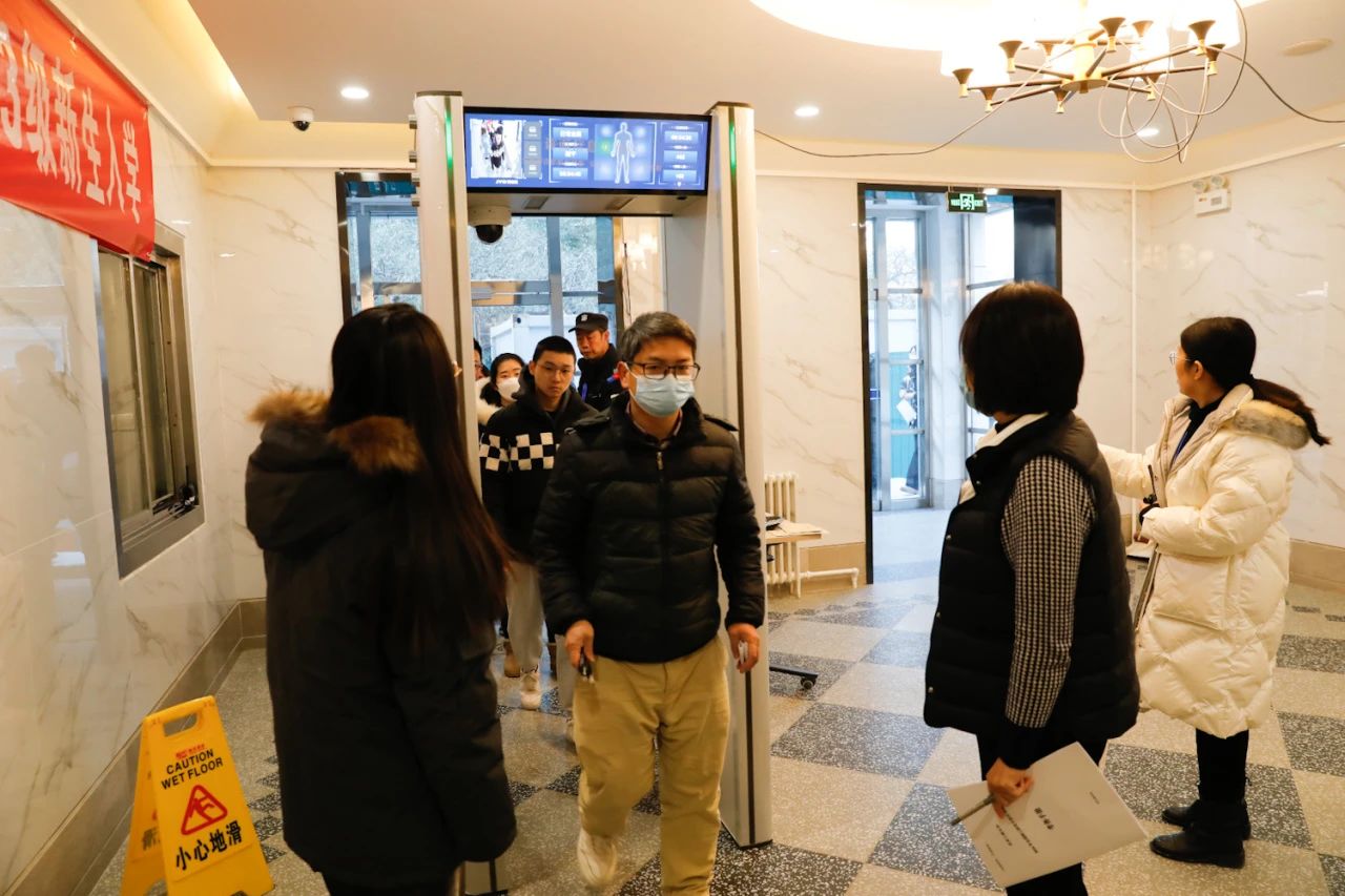 按照教育部要求,今年研考入场新增智能安检门检查环节,考生只准携带准考证、有效身份证件及符合规定的考试用品,通过智能安检门安检后方可进入考场楼参加考试。对于如何存放物品这一问题,我校交出了令人满意的答卷:安排工作人员发放条形码,条形码是领取手机及物品的有效凭证。工作人员全程服务,避免条形码丢失而出现他人冒领的情况。今年我校充分发挥智慧校园功能,将数字未来中心作为考试指挥中心,通过中心电子大屏监控各考场情况,确保第一时间应对处理突发事件,推动监考工作数字化、智能化、高效化。