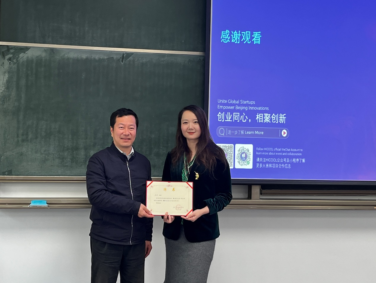 讲座结束后,进行了“校外导师授予仪式”,刘敏华为武沂颁发聘书,并为本次讲座做总结。他指出,要以创业者的心态来营造创业的生态,鼓励同学们在学习深化创业知识时,充分利用实践机会,在北京这块创业的沃土上积极开拓、勇敢拼搏。
