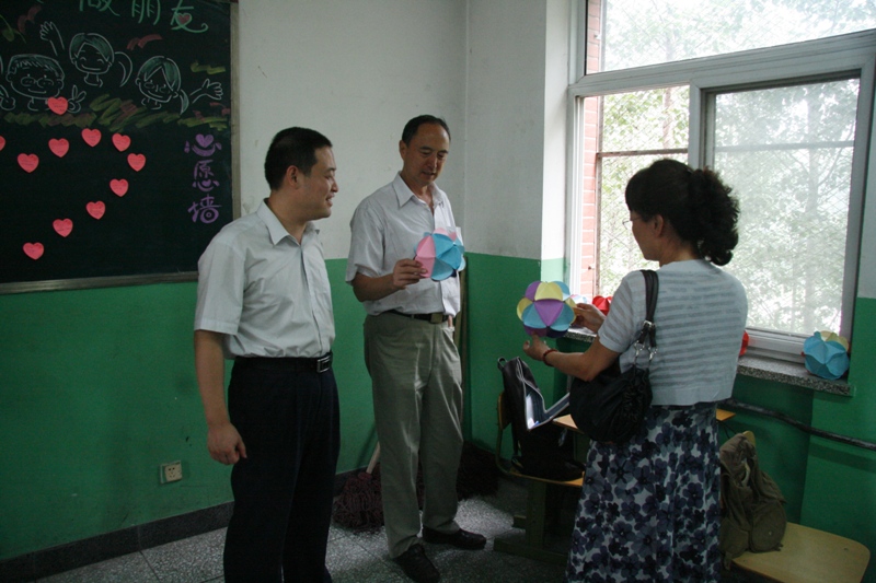 随后,慰问团到达艺术与传媒学院实践分团所在的良乡四中,在课堂上,艺术与传媒学院实践分团的成员们正在教中学生们画素描、做手工,卢思锋副书记欣赏了大家的手工艺品,并倾听了“我的梦想”主题作文朗读课。慰问团还参观了实践分团同学的宿舍和食堂,对于他们的生活情况进行了了解和真切的关怀。